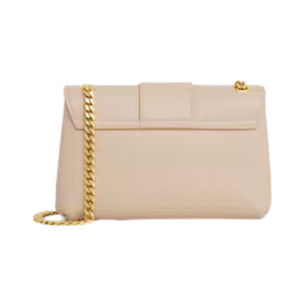 Dimensioni:● Larghezza: 25cm● Altezza: 17 cm● Profondità: 9 cm Dettagli:● Materiale: Pelle di vitello liscia ● Colore: Beige● Chiusura: Pattina con