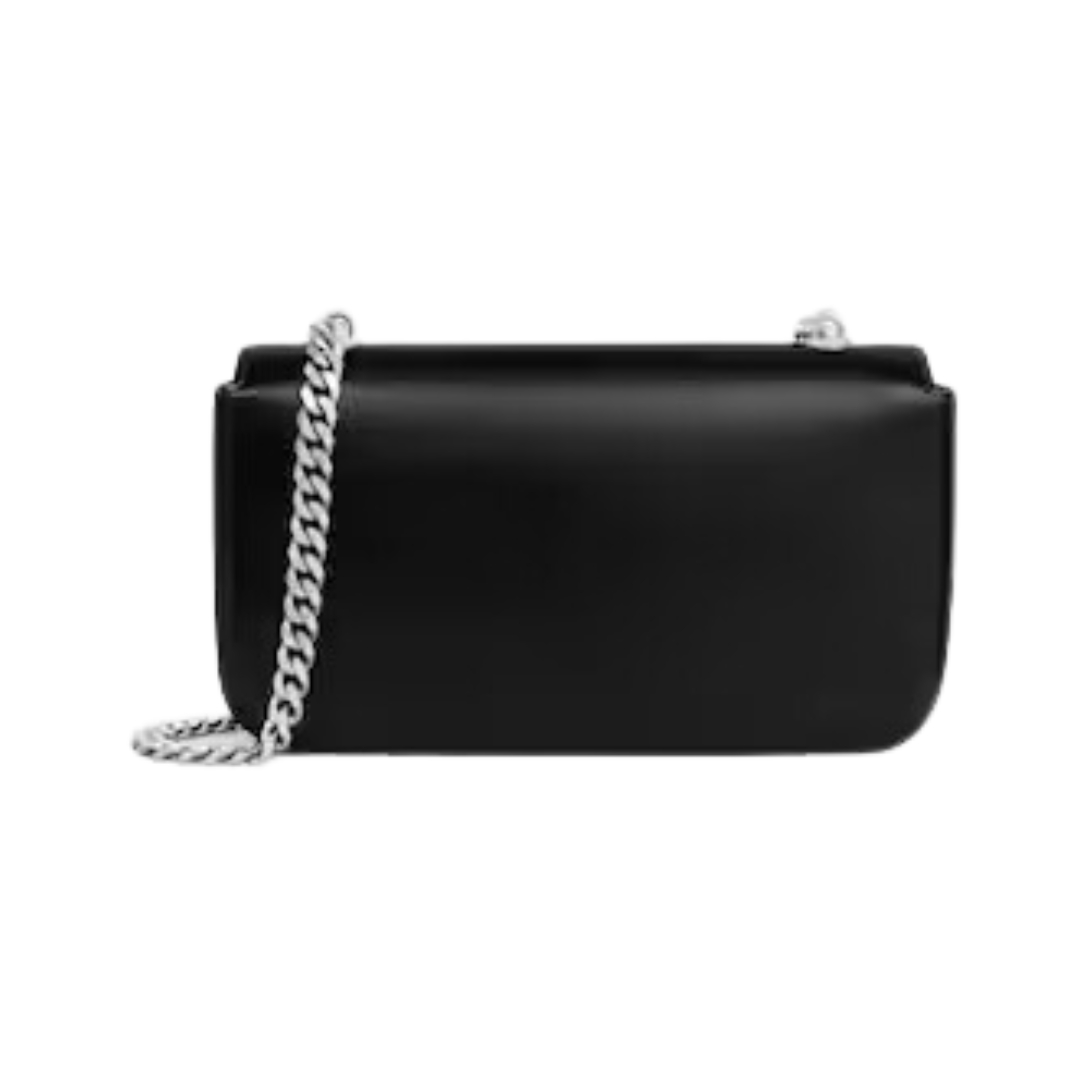 Dimensioni:● Larghezza: 20,5 cm● Altezza: 12,5 cm● Profondità: 6 cm Dettagli:● Materiale: Pelle di vitello lucida● Colore: Nero● Chiusura: Patta