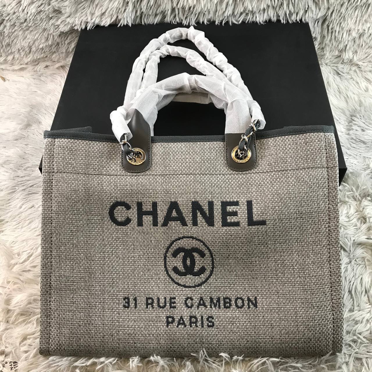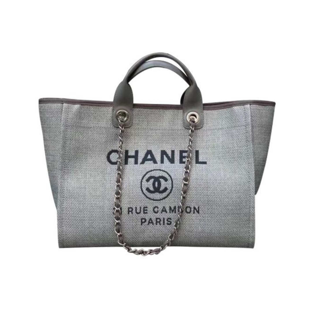 Borsa Chanel Deauville Tote Large in tela grigia 38 cm