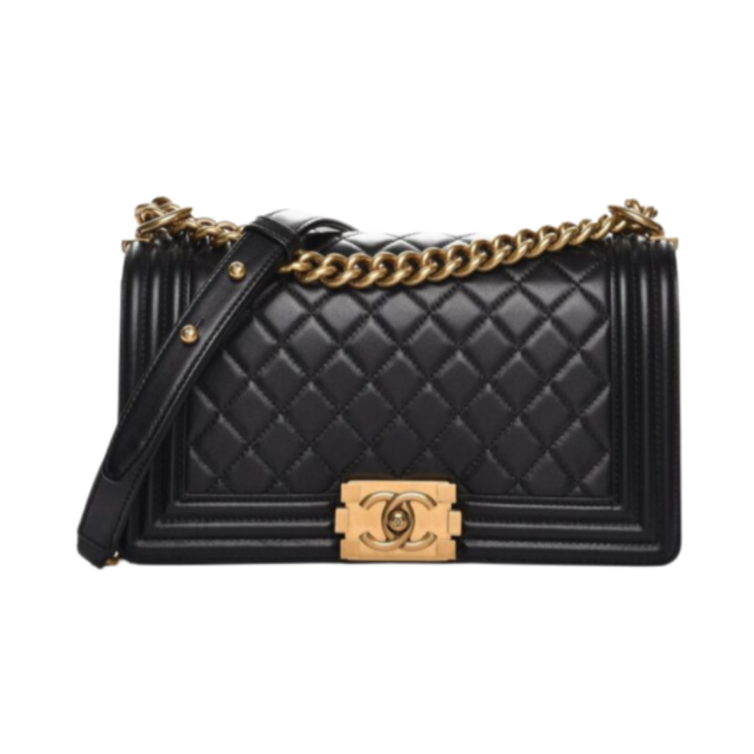 Mini Borsa Chanel Boy in pelle nera con finiture dorate 25 cm