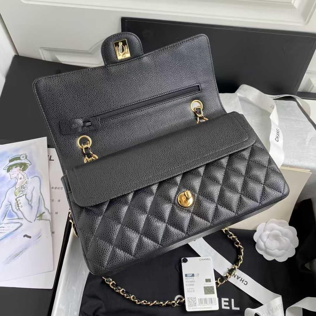 Borsa Chanel 11.12 Double Flap nera Caviar media 25,5 cm