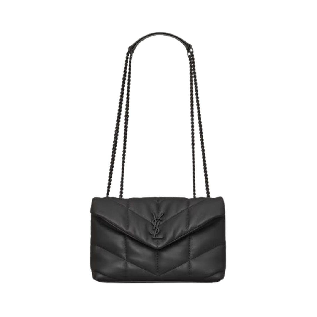 Borsa Saint Laurent Loulou Puffer Small in nappa nera 29 cm