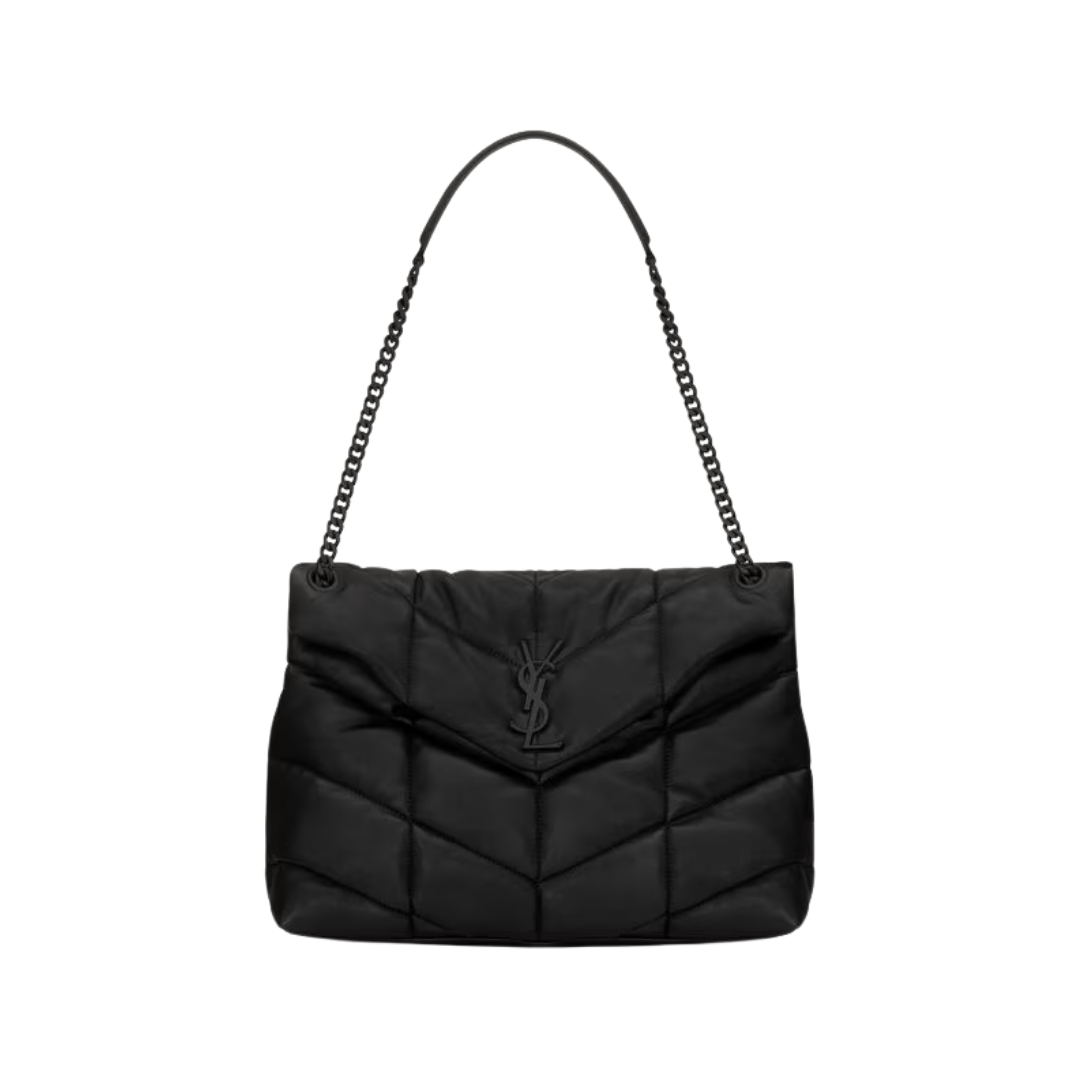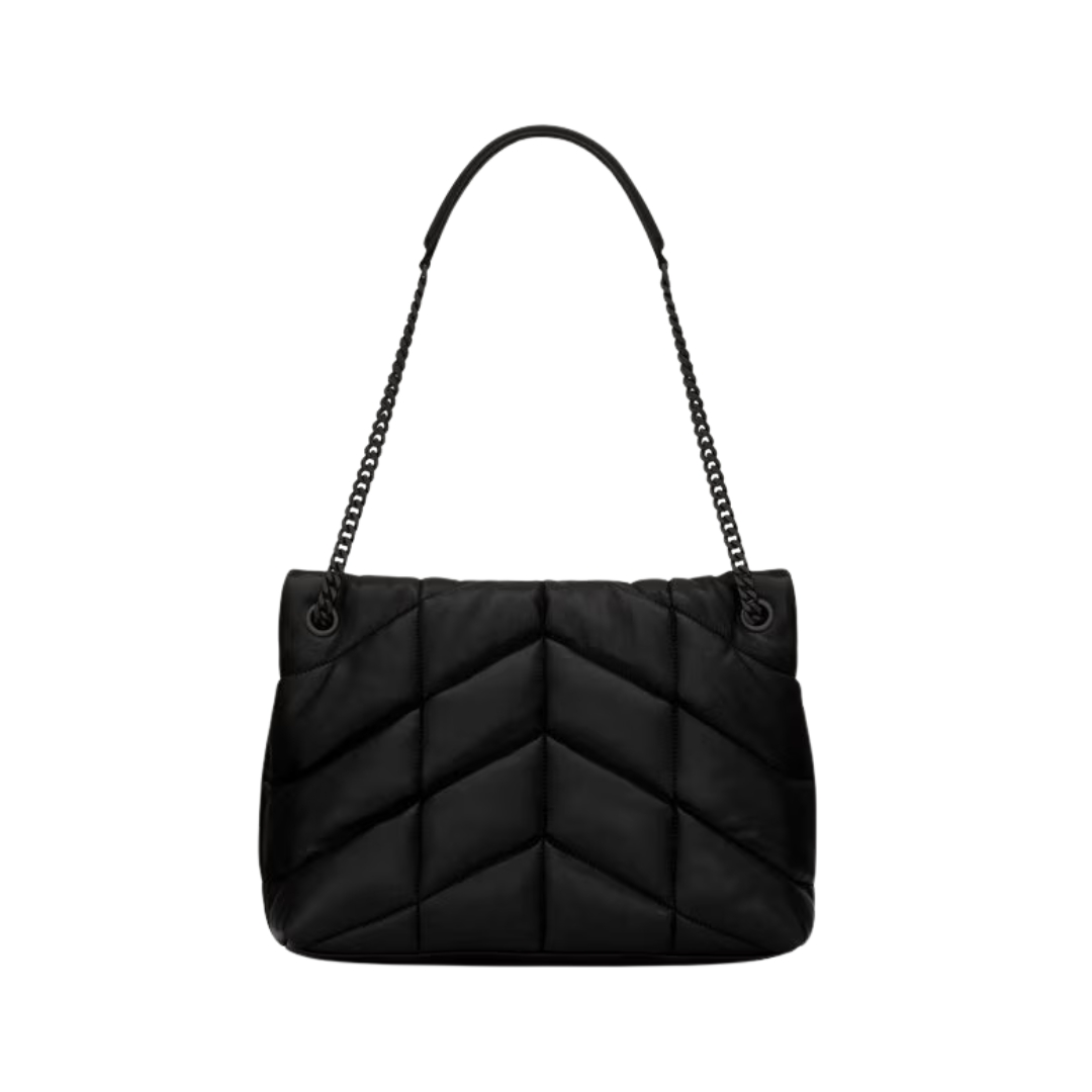Borsa Saint Laurent Loulou Puffer Medium in nappa nera 34 cm