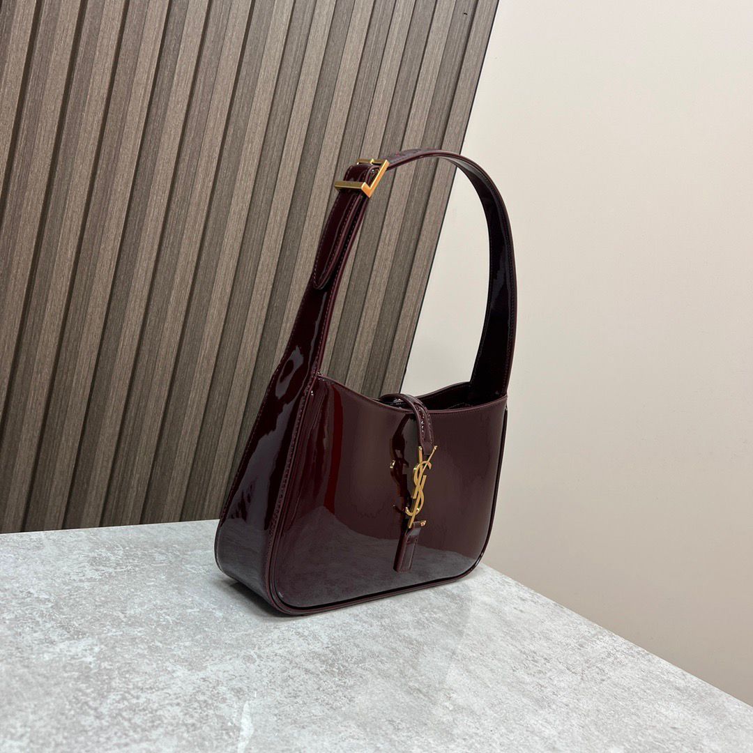 Borsa Saint Laurent Le 5 À 7 Hobo in pelle verniciata bordeaux 23 cm