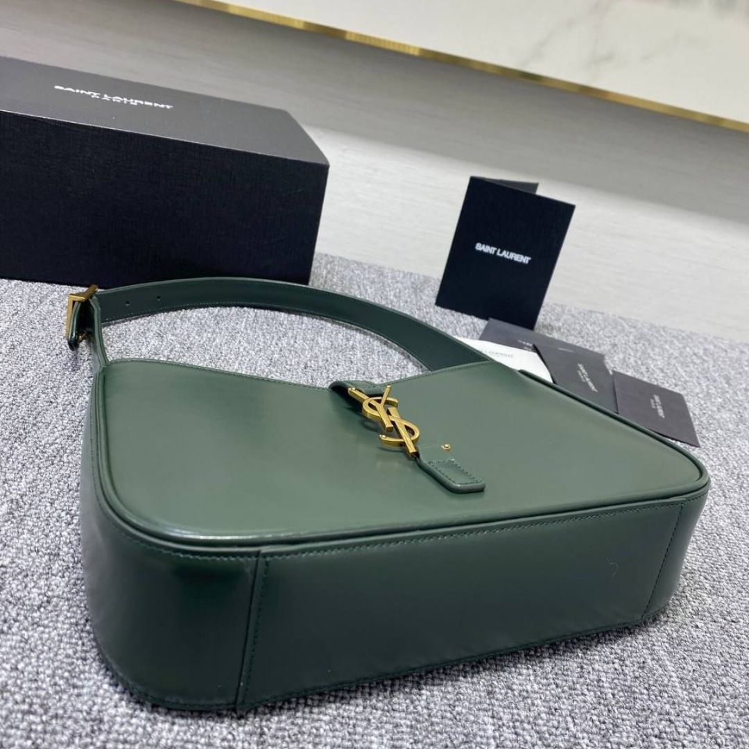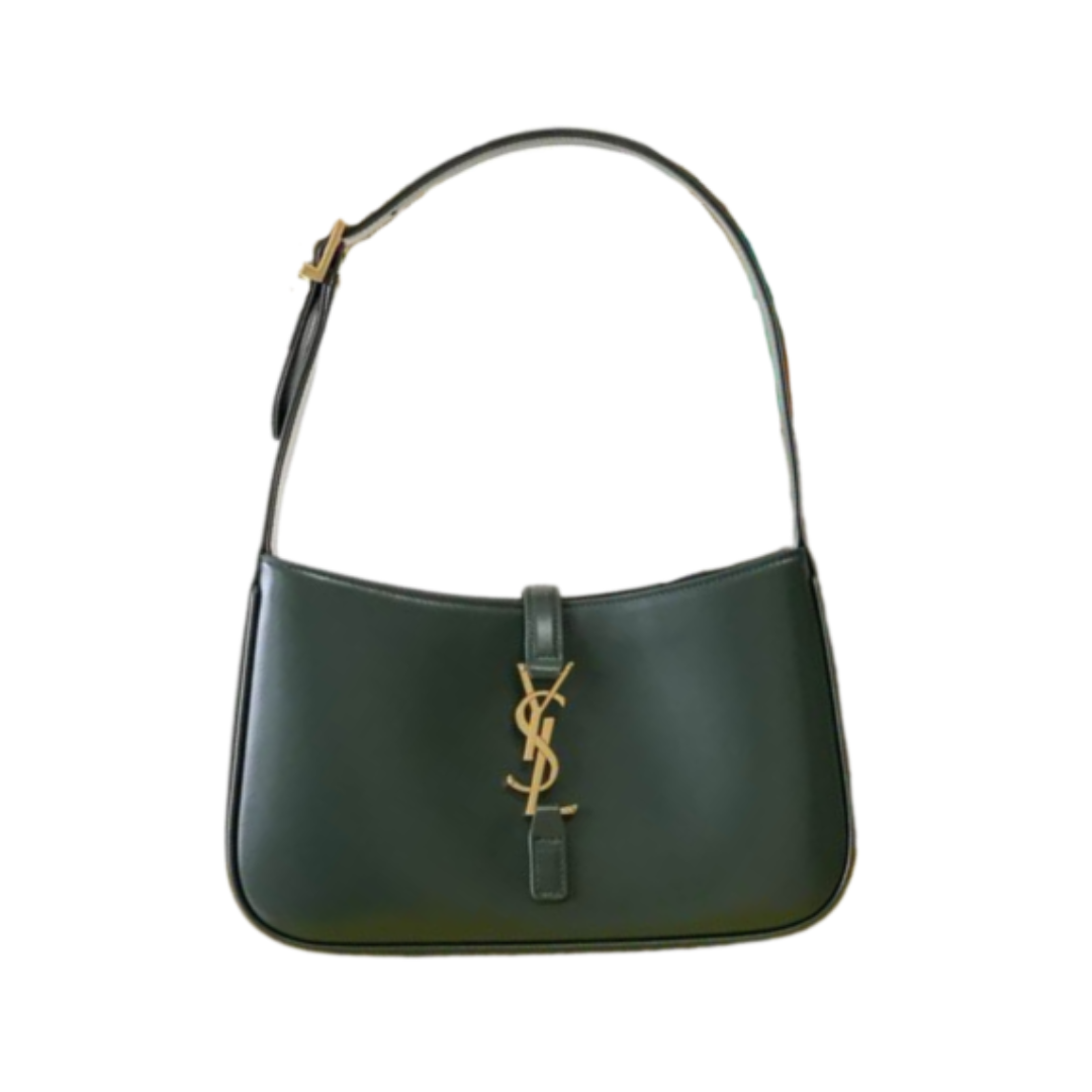 Borsa Saint Laurent Le 5 À 7 Hobo in pelle liscia verde oliva 23 cm