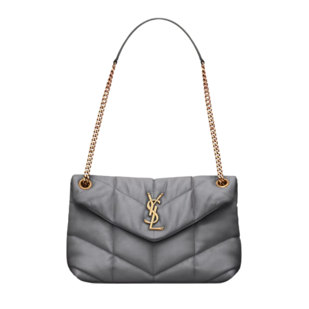 Borsa Saint Laurent Loulou Puffer Small in nappa grigia 29 cm