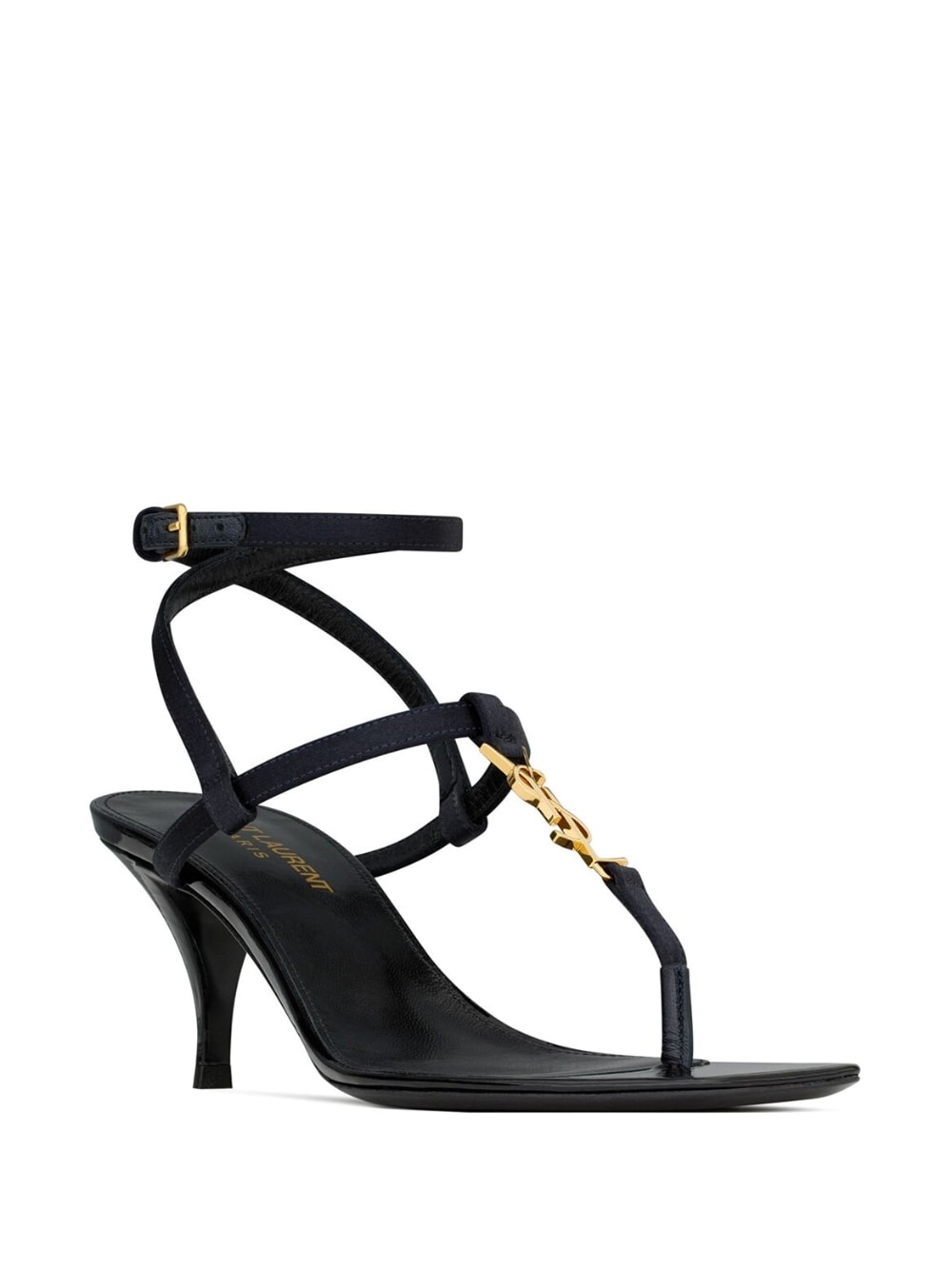 Dettagli:● Materiale: Pelle liscia● Colore: Nero● Chiusura: Cinturino alla caviglia con fibbia● Logo: Lettere YSL metalliche lungo i cinturini● Suola: