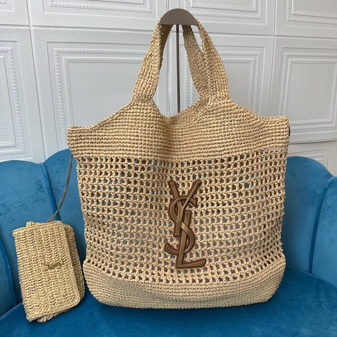Borsa Saint Laurent Icare in rafia naturale 43 cm