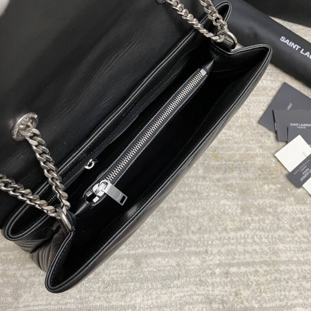 Borsa Saint Laurent LouLou in pelle nera 25 cm