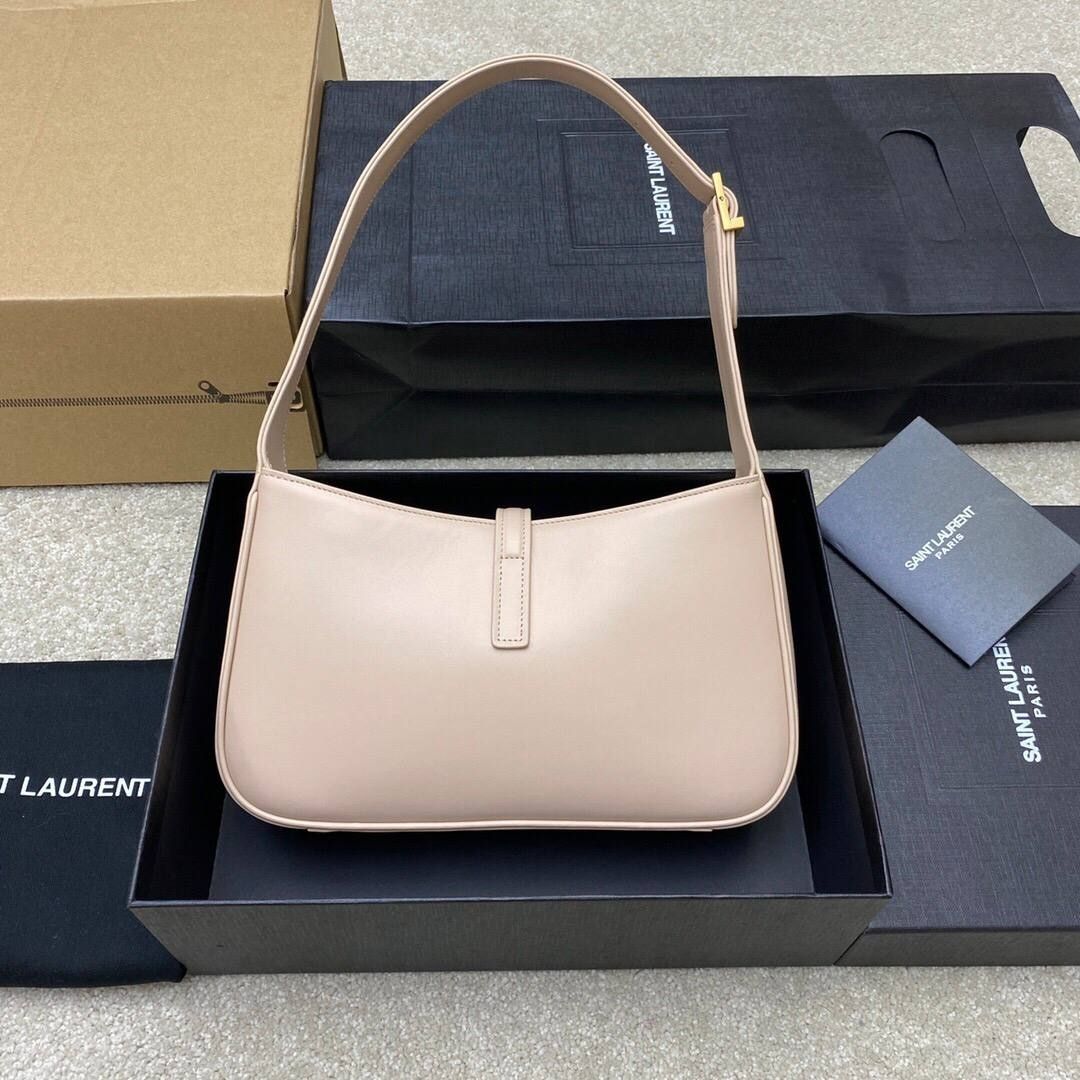 Borsa Saint Laurent Le 5 À 7 Hobo in pelle liscia beige 23 cm
