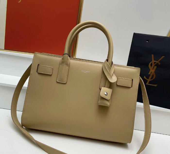 Borsa Saint Laurent Sac de Jour Small in pelle liscia beige 32 cm