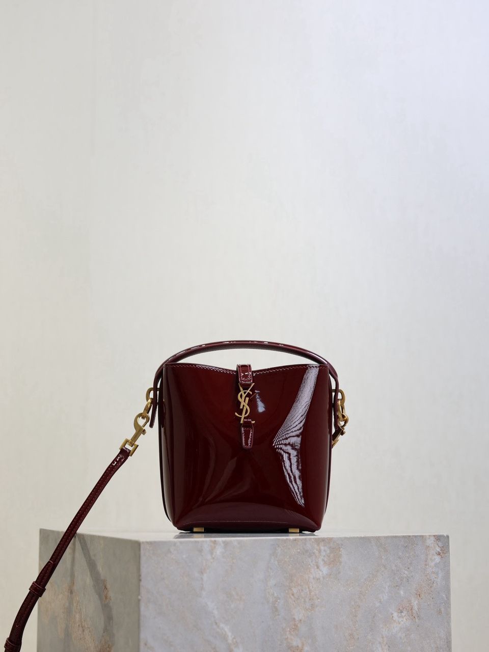 Dimensioni:● Larghezza: 15 cm● Altezza: 13 cm● Profondità: 6 cm Dettagli:● Materiale: pelle di vitello verniciata● Colore: bordeaux lucido● Chiusura: