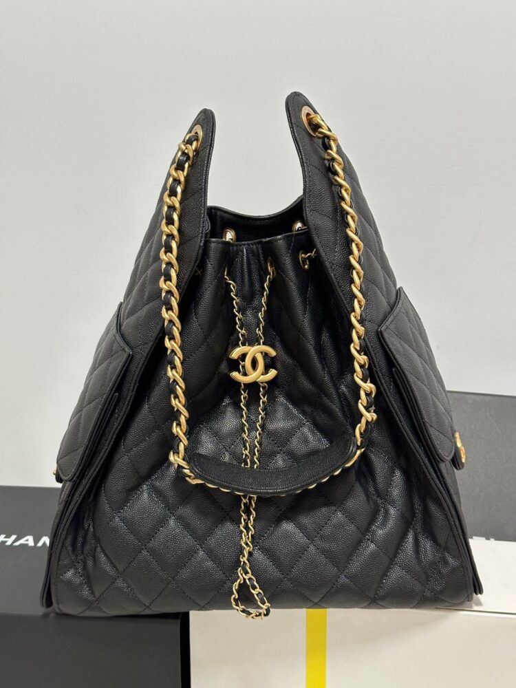 ● Chiusura: Coulisse superiore con catena e logo CC dorato