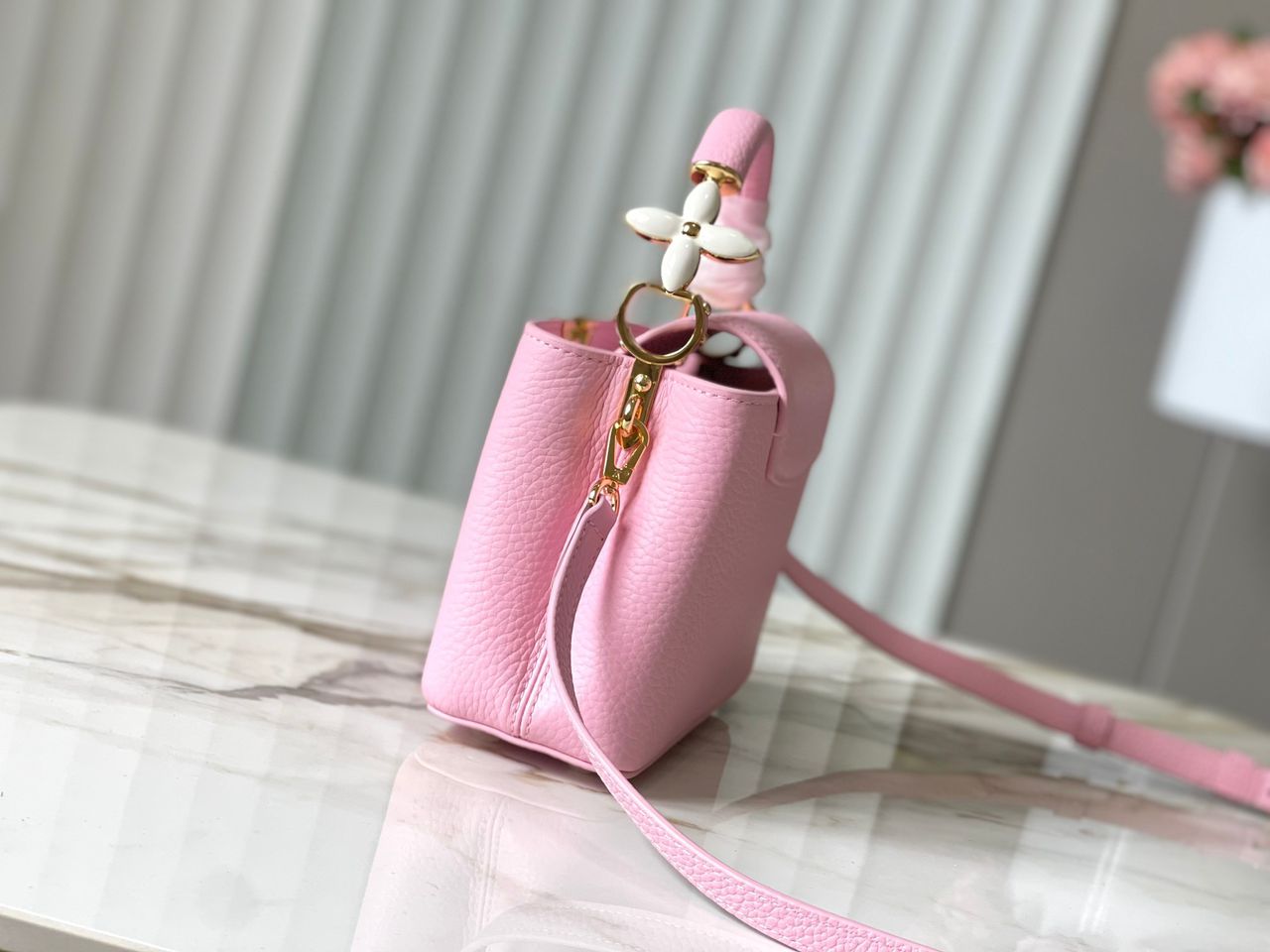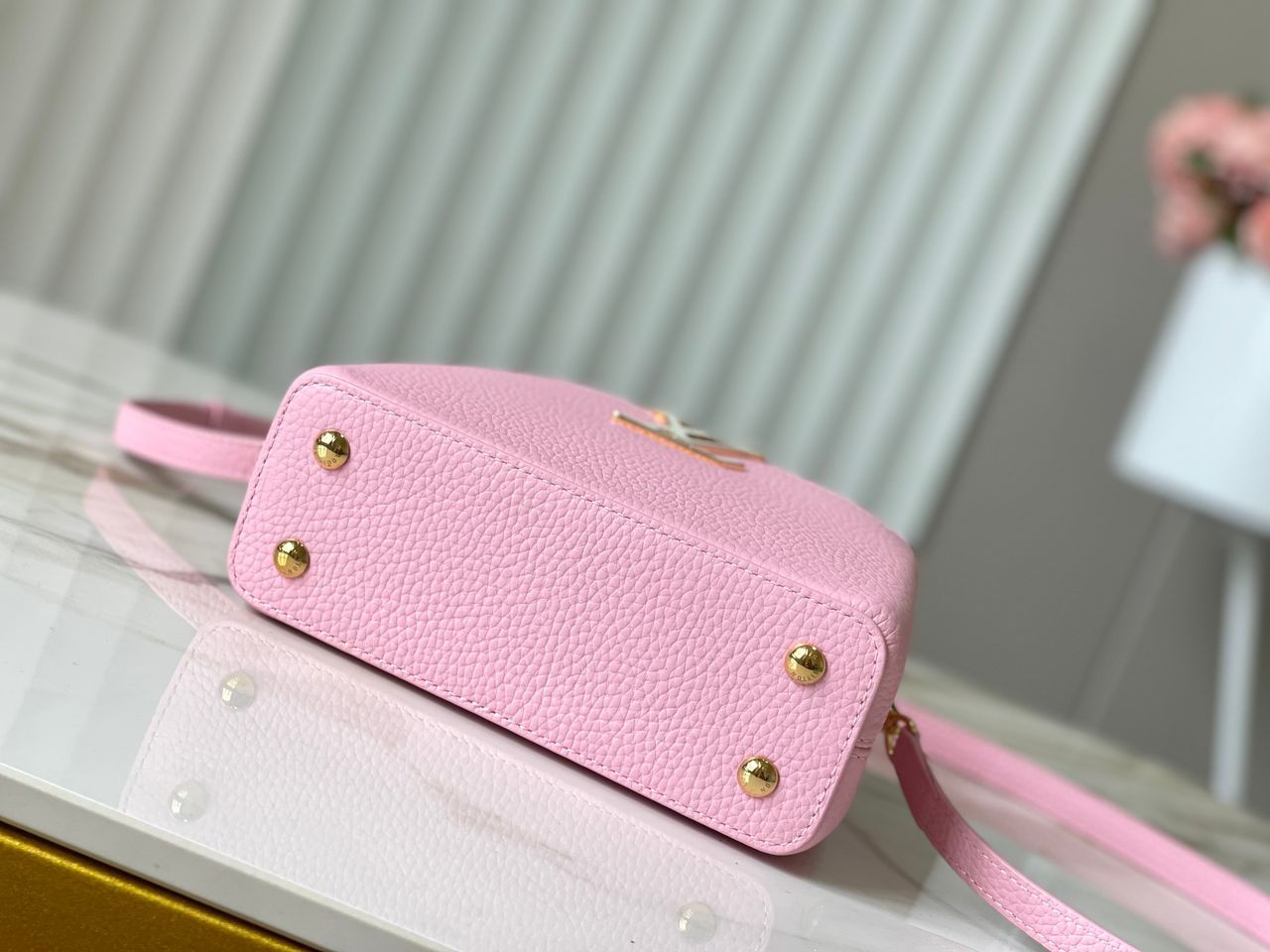 ● Logo: LV oversize frontale in metallo dorato smaltato tono su tono