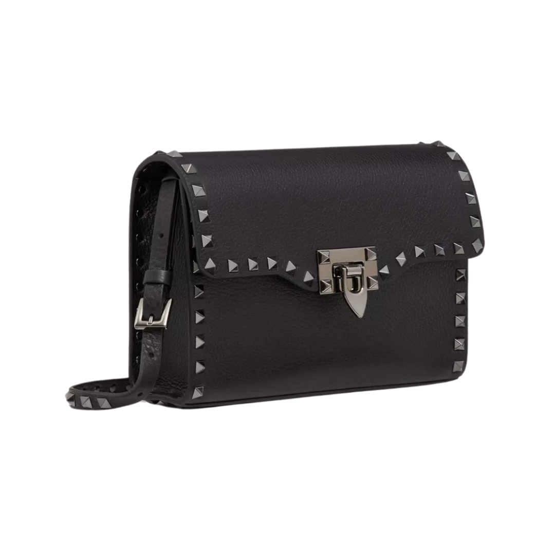 Borsa Valentino crossbody in pelle nera con borchie 22.5 cm