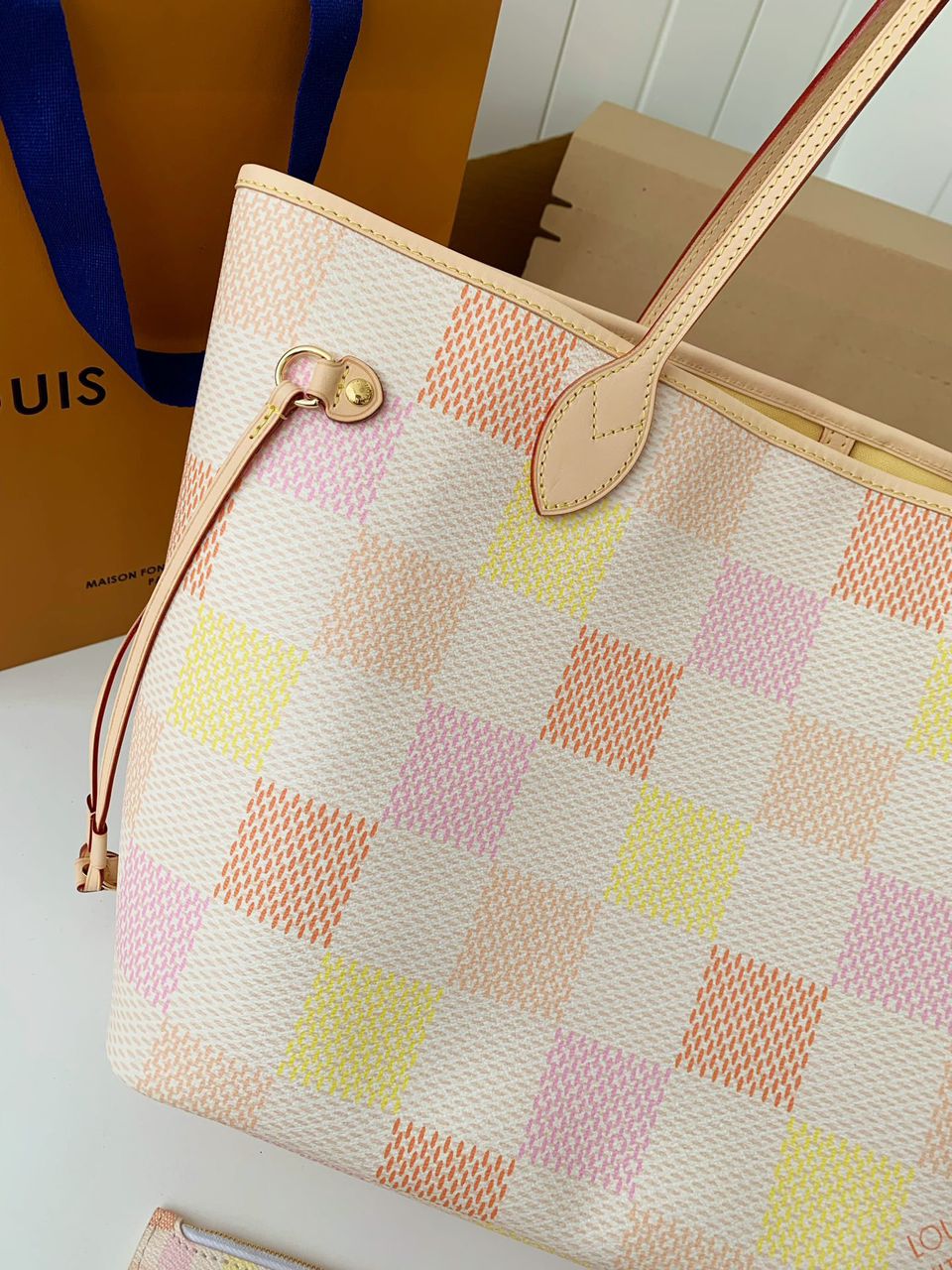 ● Materiale: Tela Damier Pastel con finiture in pelle