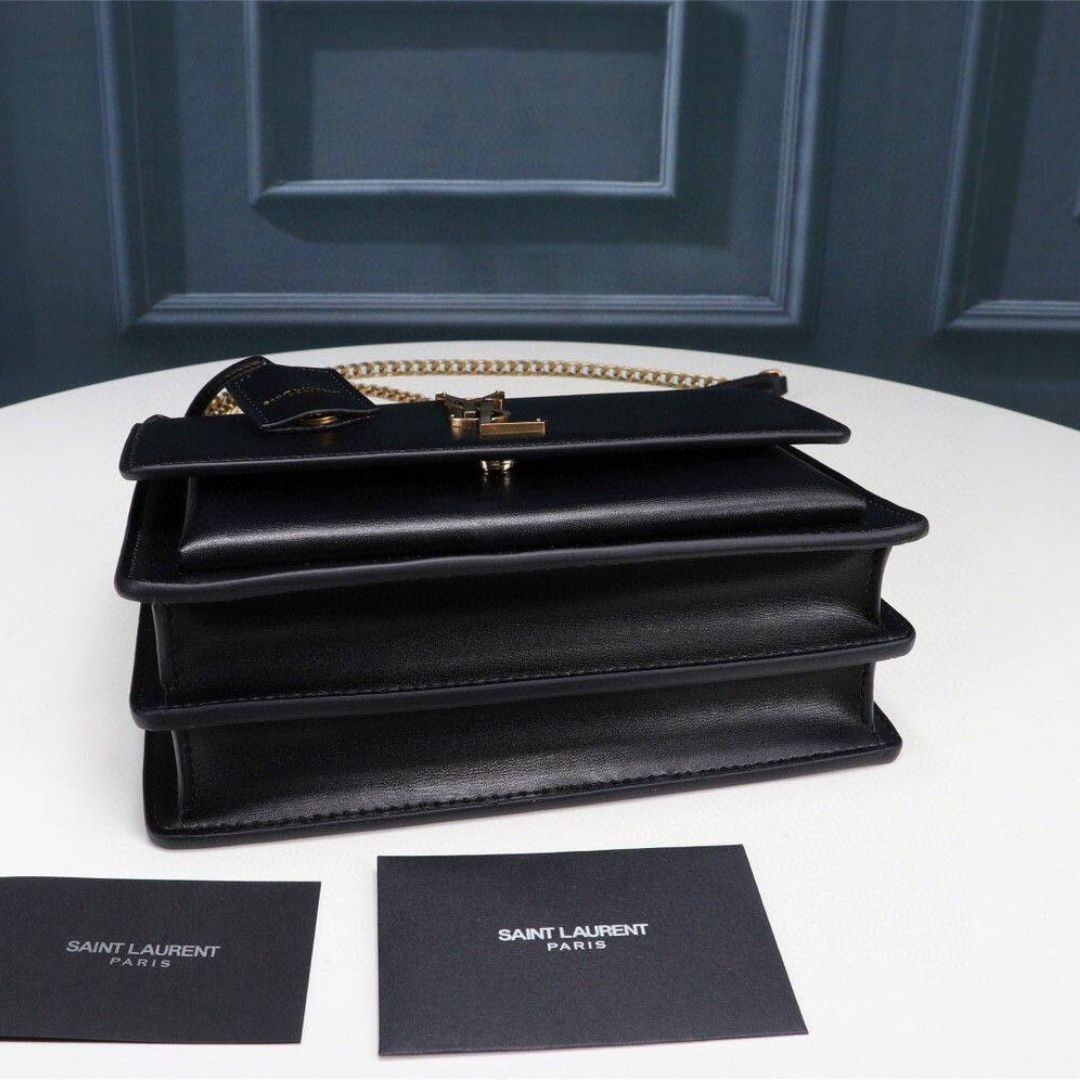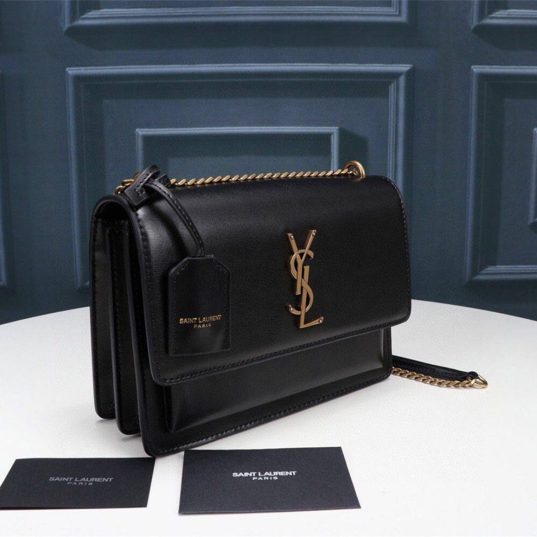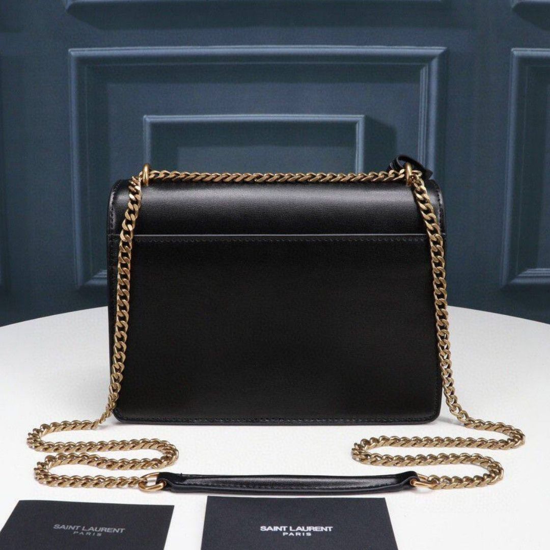 ● Tracolla: Catena a scorrimento con inserto in pelle (portabile a spalla o crossbody) + Tag pendente/Mini portacarte Saint Laurent removibile