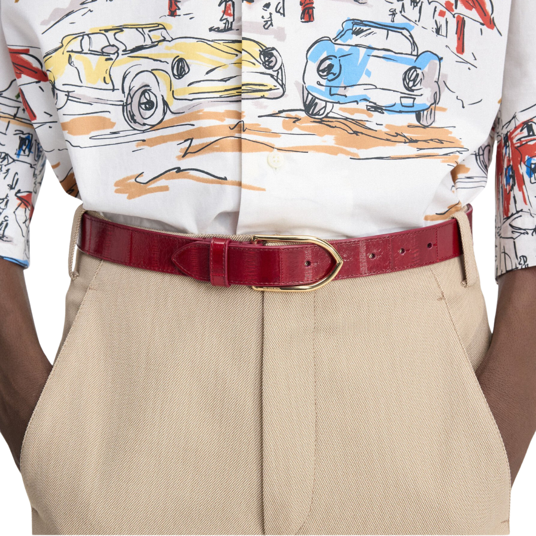 Le cinture Cupido Milano sono realizzate con cura artigianale e seguono una misurazione in centimetri (cm) basata sulla lunghezza totale della cintura, da estremo a estremo, inclusa la fibbia.