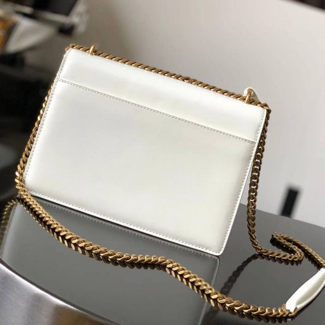 ● Tracolla: Catena a scorrimento con inserto in pelle (portabile a spalla o crossbody) + Tag pendente/Mini portacarte Saint Laurent removibile