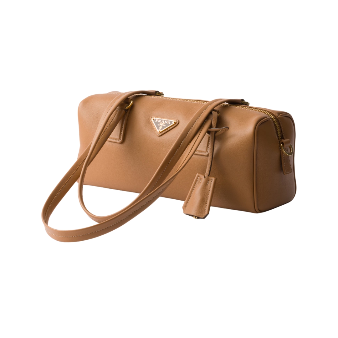 Borsa Prada Buckle piccola in pelle caramello 23 cm