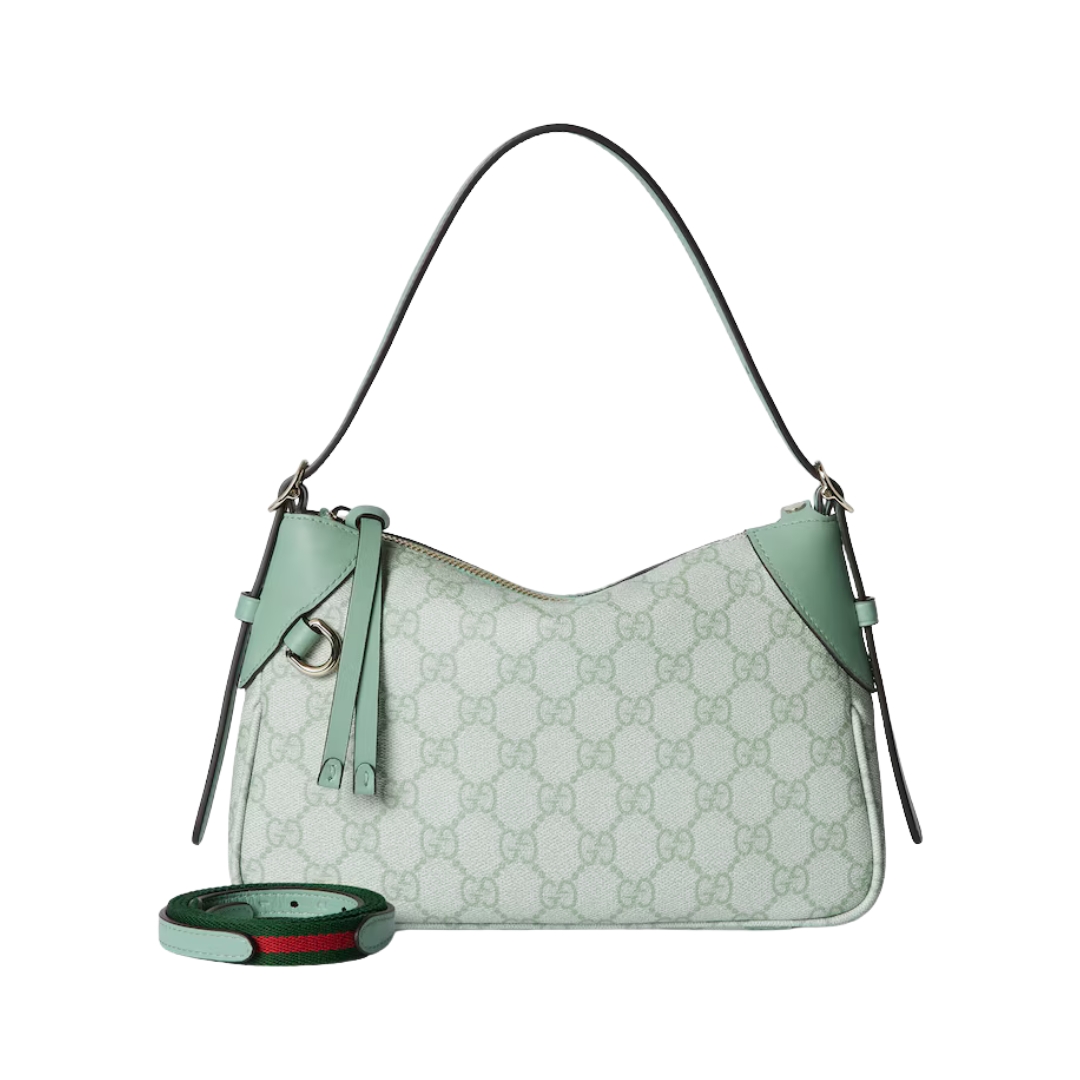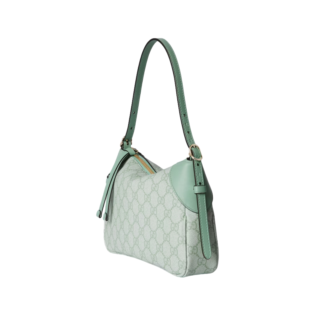 Dimensioni:● Larghezza: 24.5 cm● Altezza: 17 cm● Profondità: 6 cm Dettagli:● Materiale: Tessuto GG Supreme e pelle● Colore: Verde salvia