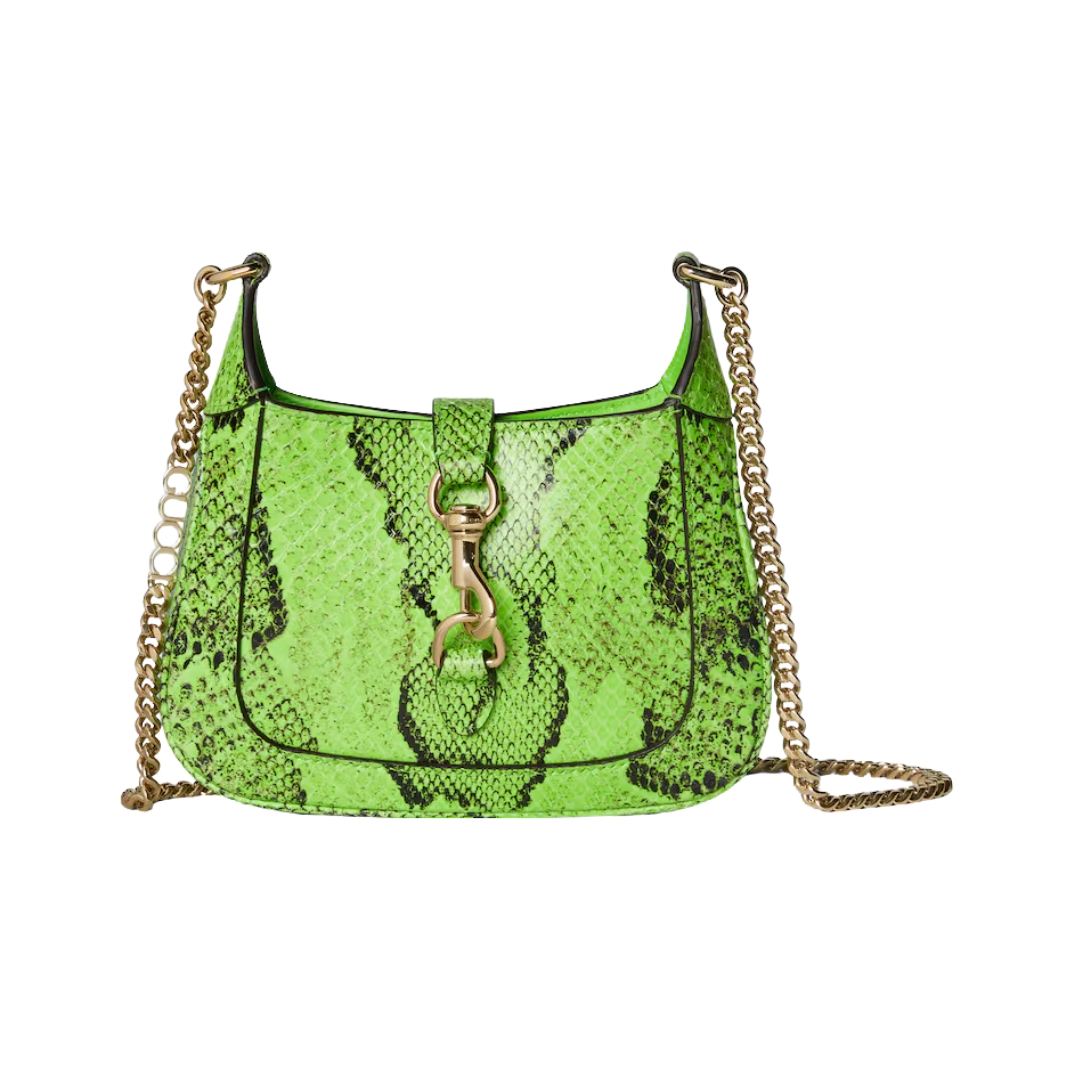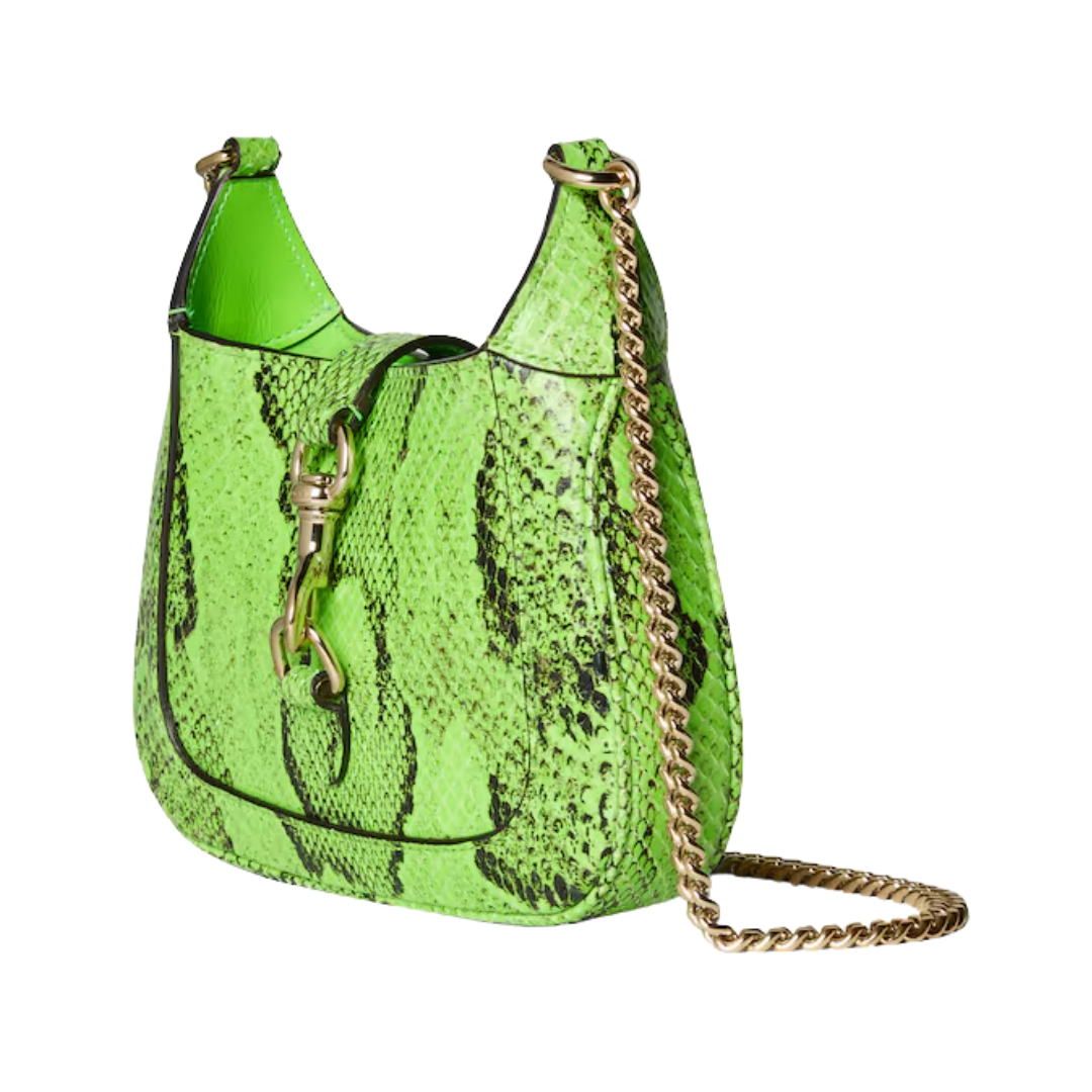 Borsa Gucci Jackie 1961 mini in pitone verde fluo 19.5 cm