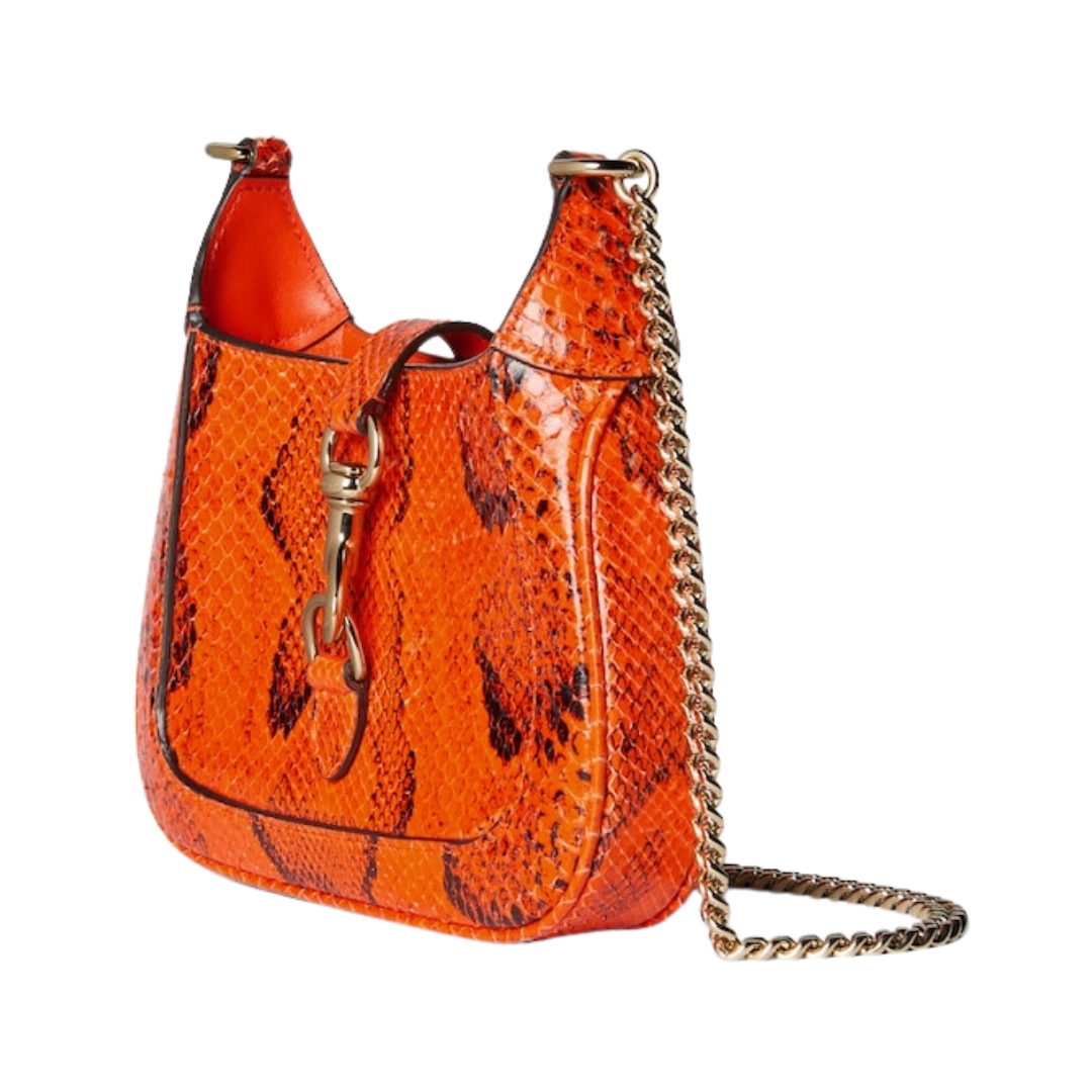 Borsa Gucci Jackie 1961 mini in pitone arancione 19.5 cm