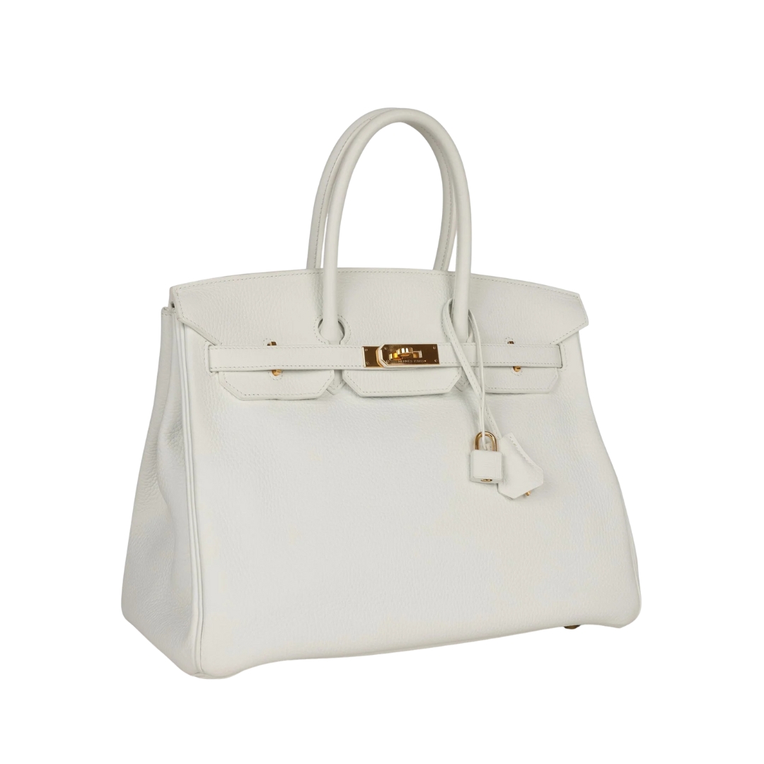 Borsa Hermès Birkin 35 in pelle Clémence bianca con finiture dorate