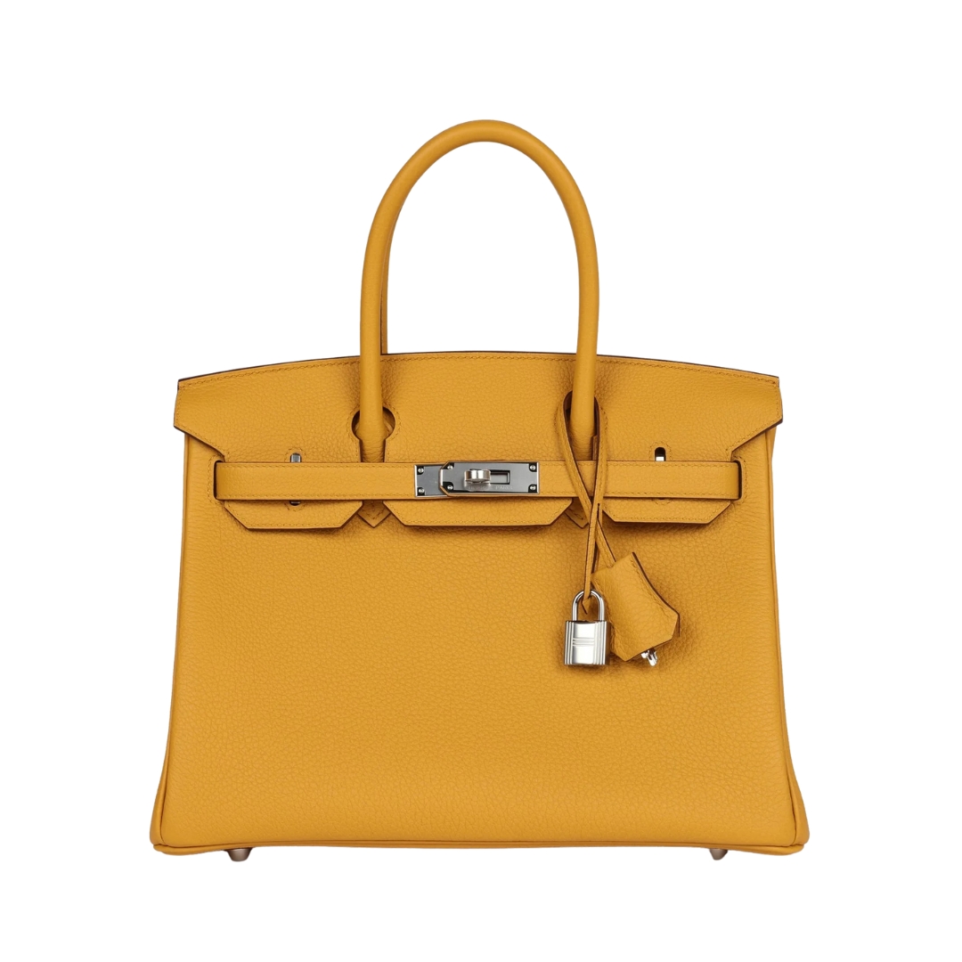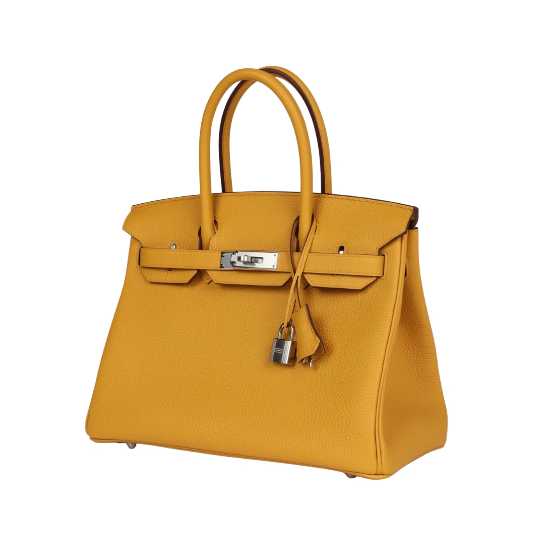 Borsa Hermès Birkin 30 in pelle Togo gialla con hardware in palladio