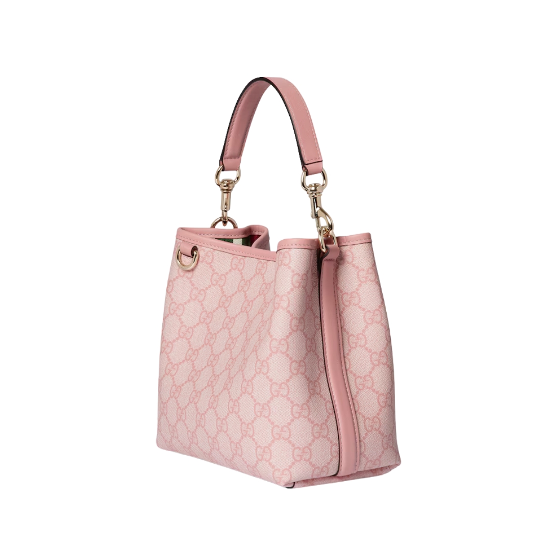 Borsa Gucci mini secchiello GG Emblem in pelle rosa chiaro 19 cm