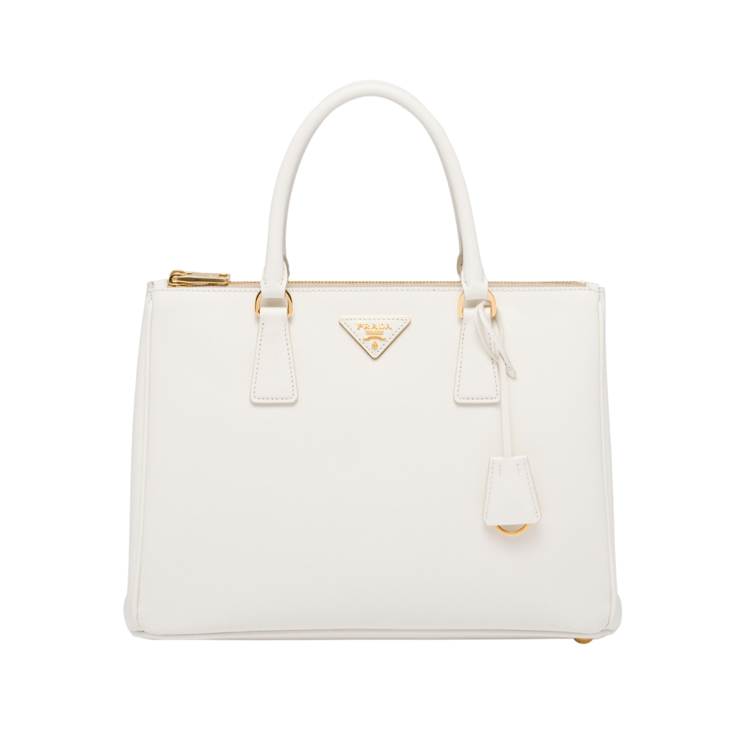 Borsa Prada Galleria grande in pelle Saffiano bianca 24 cm