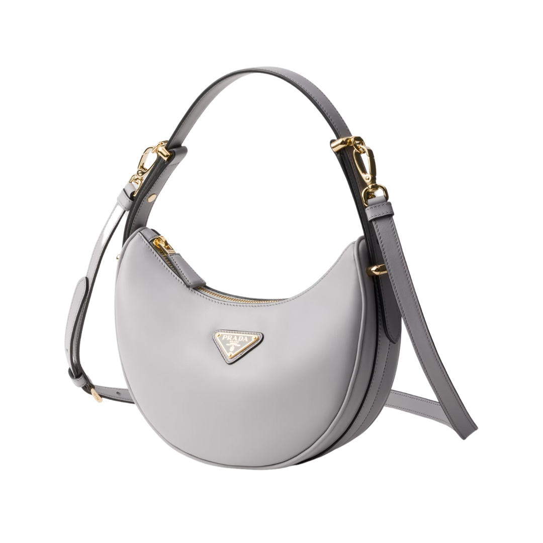 Borsa Prada Arqué piccola in pelle grigio granito 18.5 cm