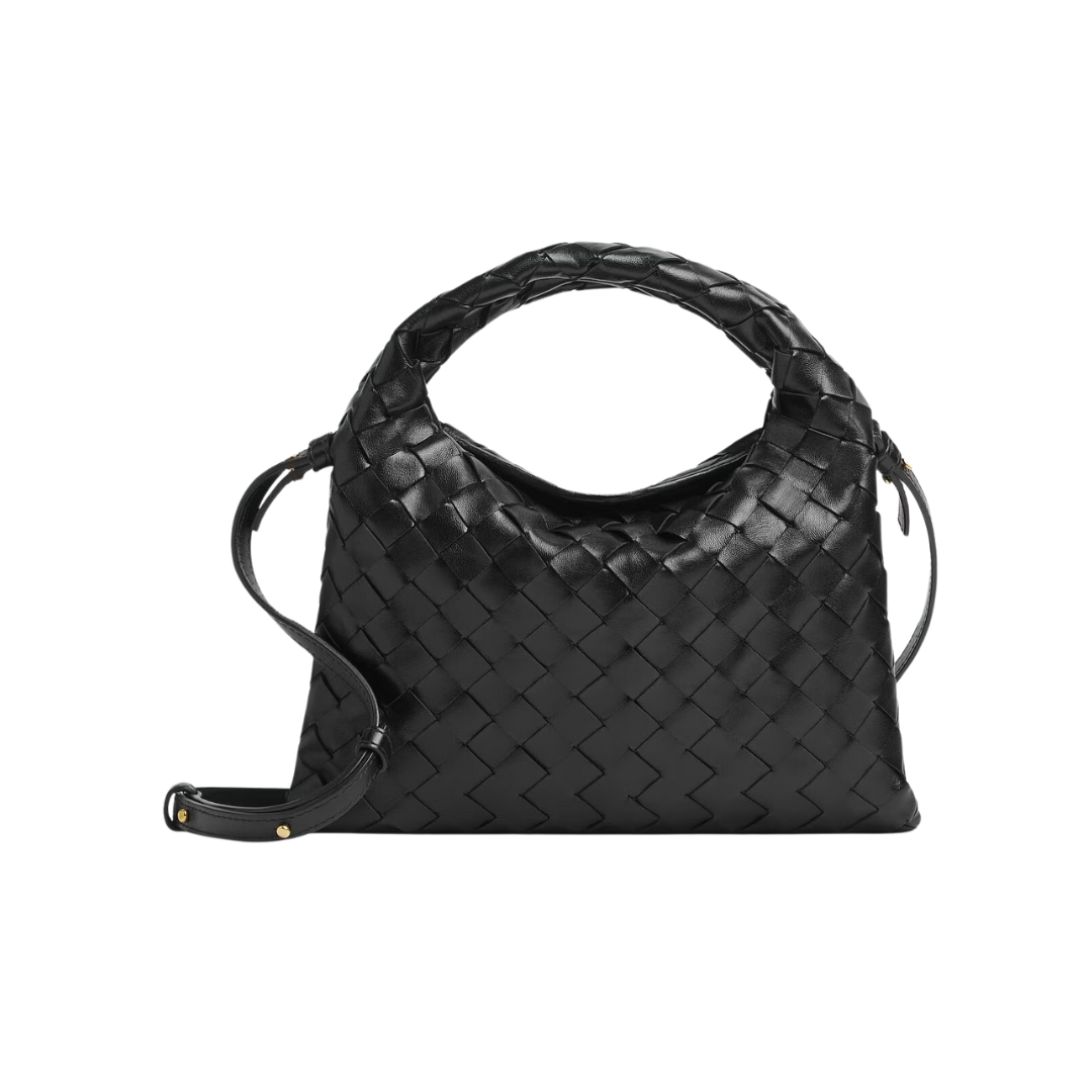 Dimensioni:● Larghezza: 18 cm● Altezza: 14 cm● Profondità: 8 cm Dettagli:● Materiale: Pelle intrecciata● Colore: Nero● Chiusura: Zip superiore● Logo: