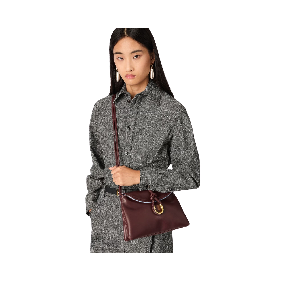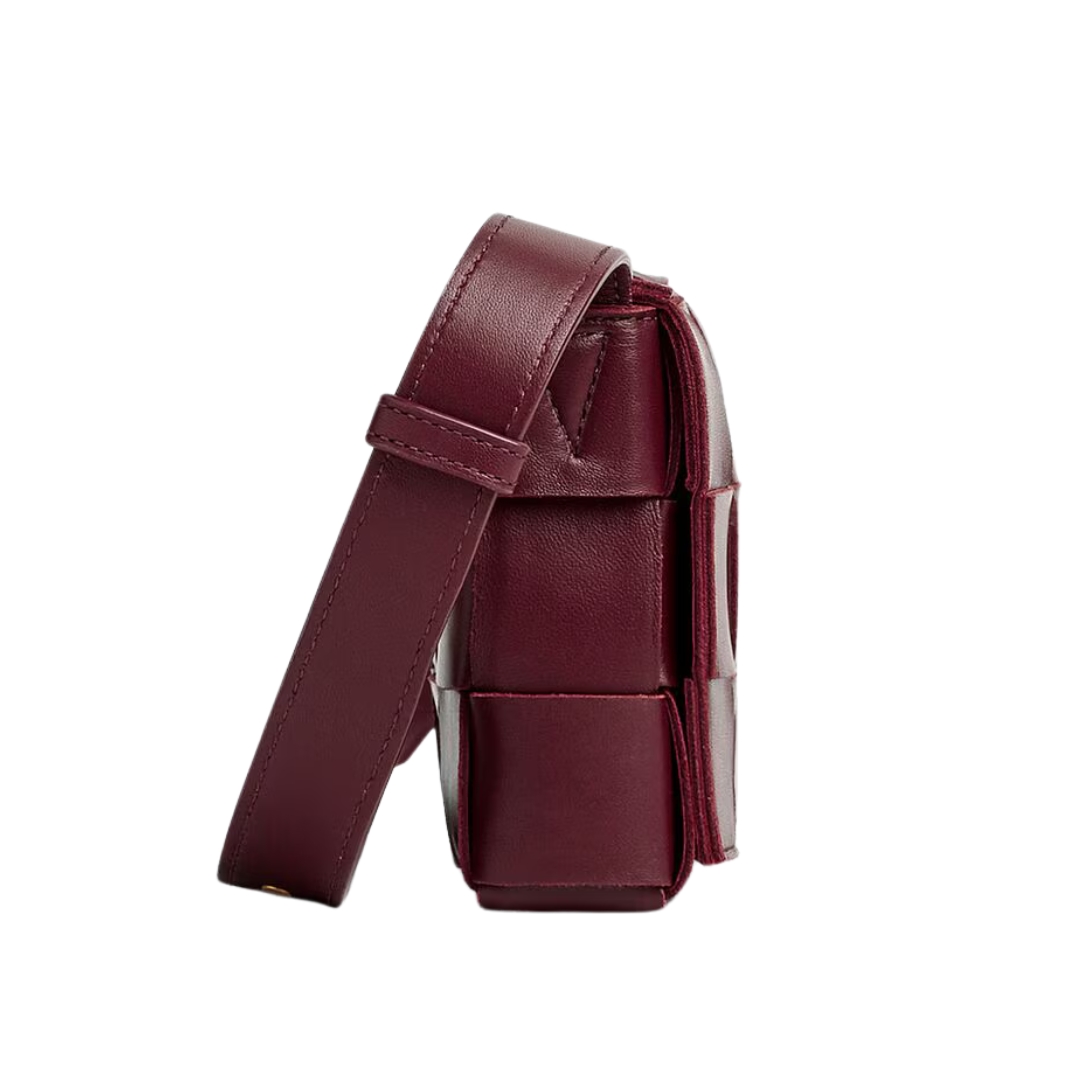 Borsa Bottega Veneta Crossbody in pelle di vitello liscia vinaccia 18,5 cm