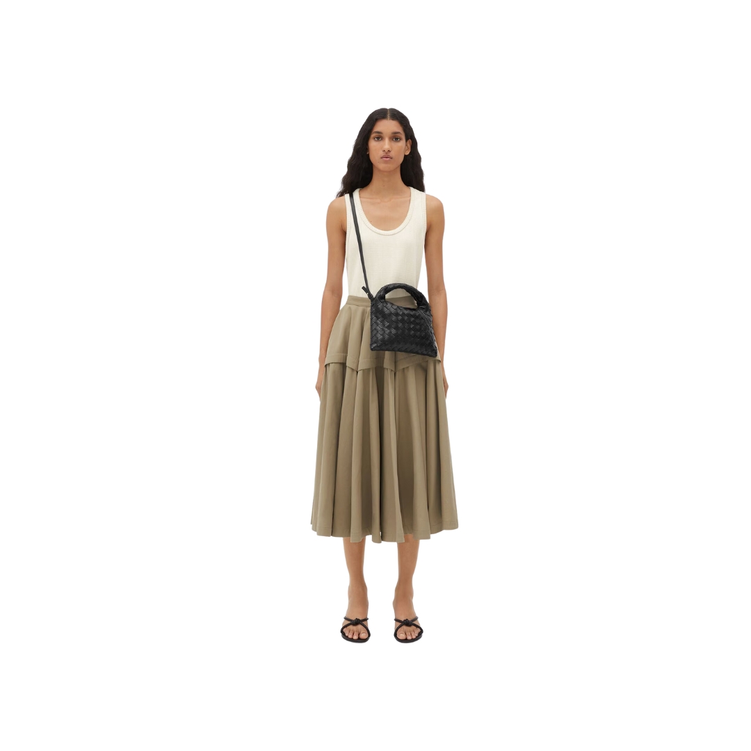 Borsa Bottega Veneta Top Handle con manico esteso in pelle nera 18 cm