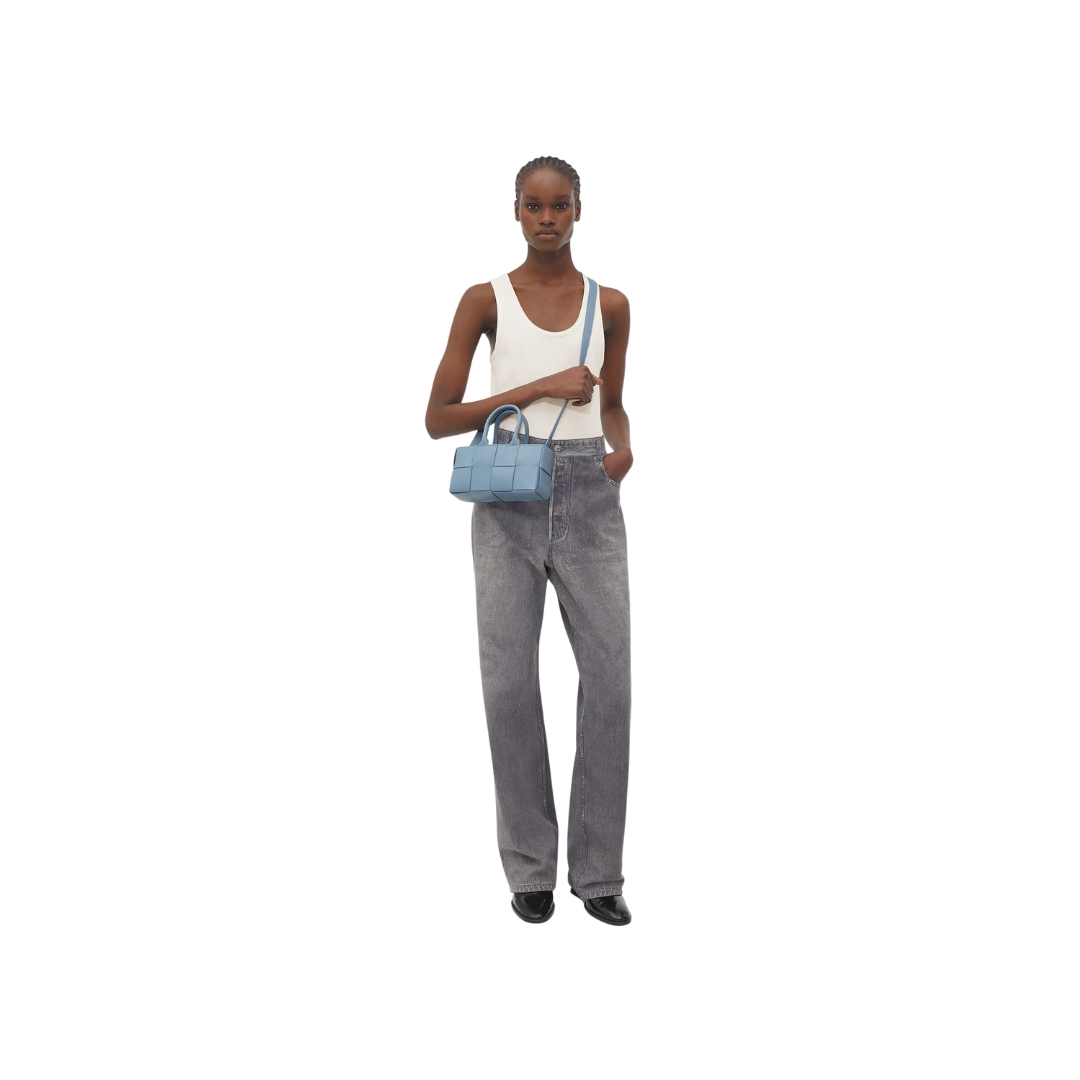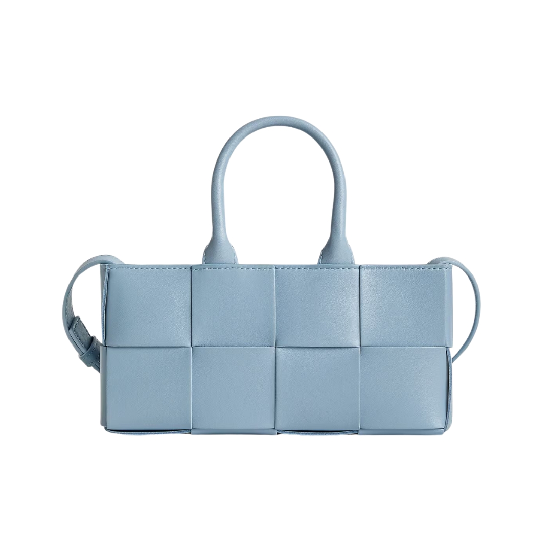 Borsa Bottega Veneta Tote mini silhouette in pelle azzurro ghiaccio 11 cm