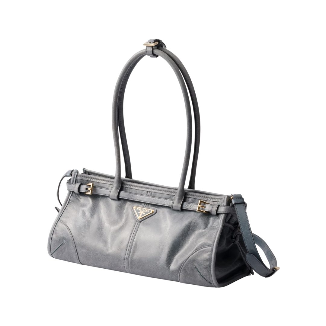Borsa Prada media in pelle blu 15.5 cm