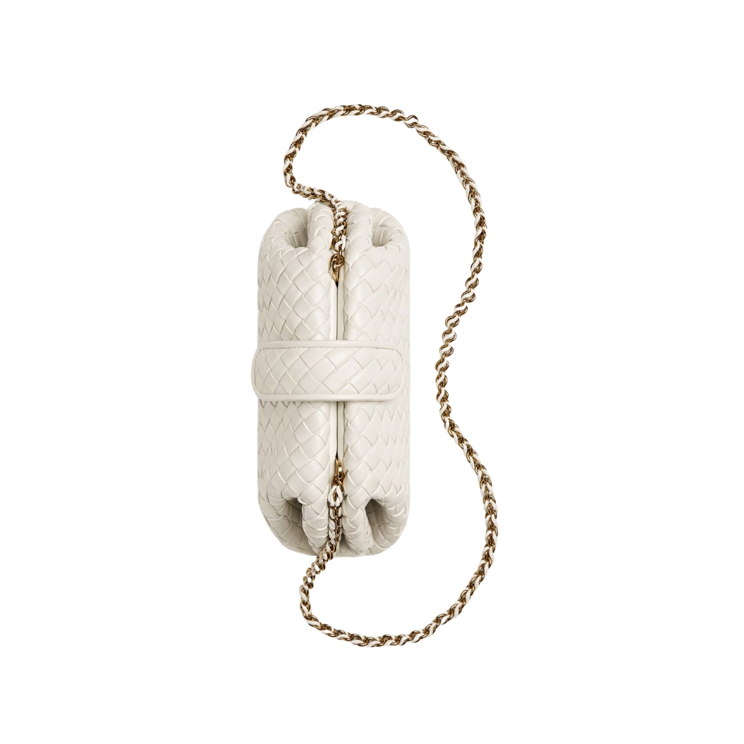 Borsa Bottega Veneta Lauren 1980 Clutch in pelle Intrecciato bianco gesso 15 cm