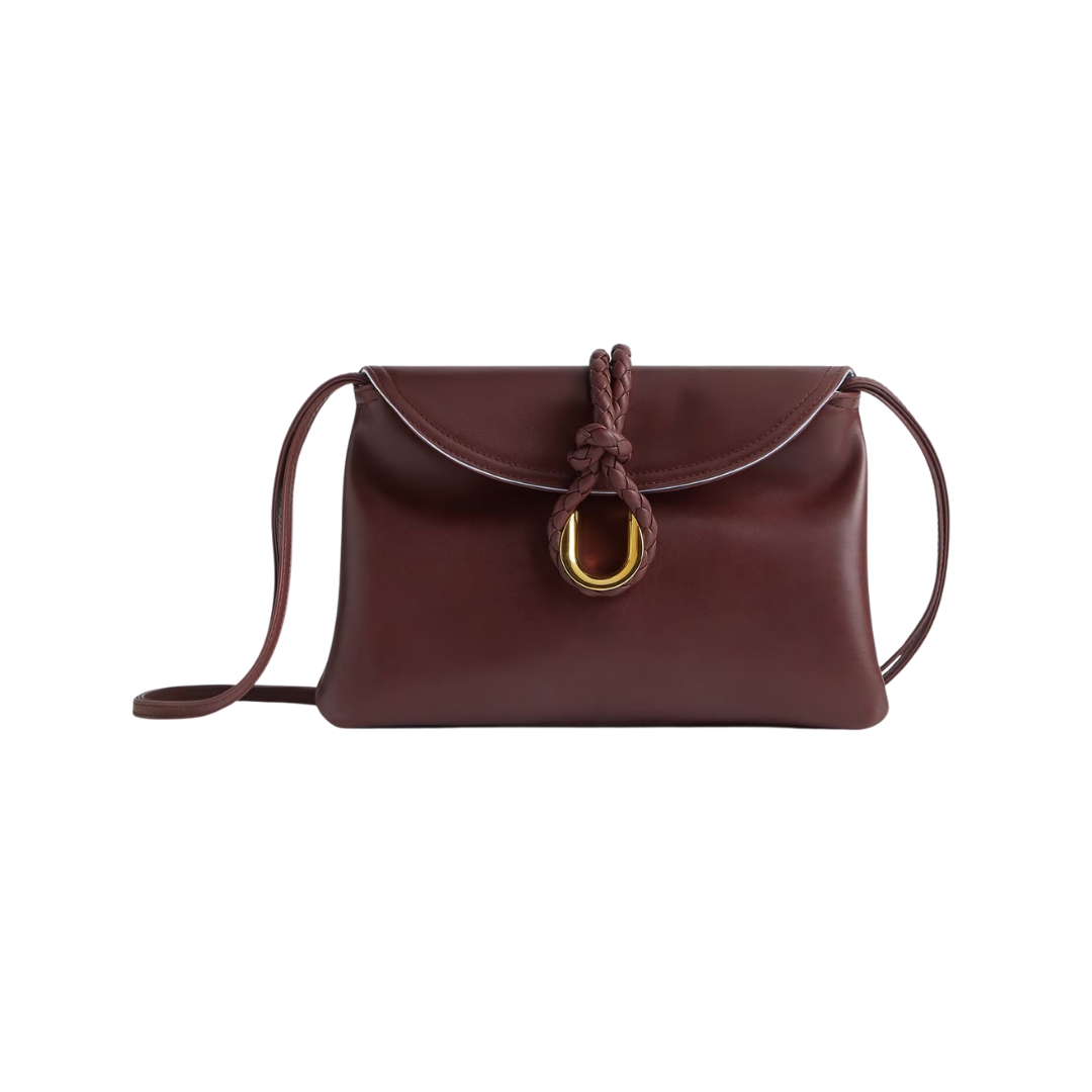 Dimensioni:● Larghezza: 15 cm● Altezza: 11 cm● Profondità: 5 cm Dettagli:● Materiale: Pelle imbottita Intrecciato● Colore: Marrone fondente● Chiusura: Chiusura