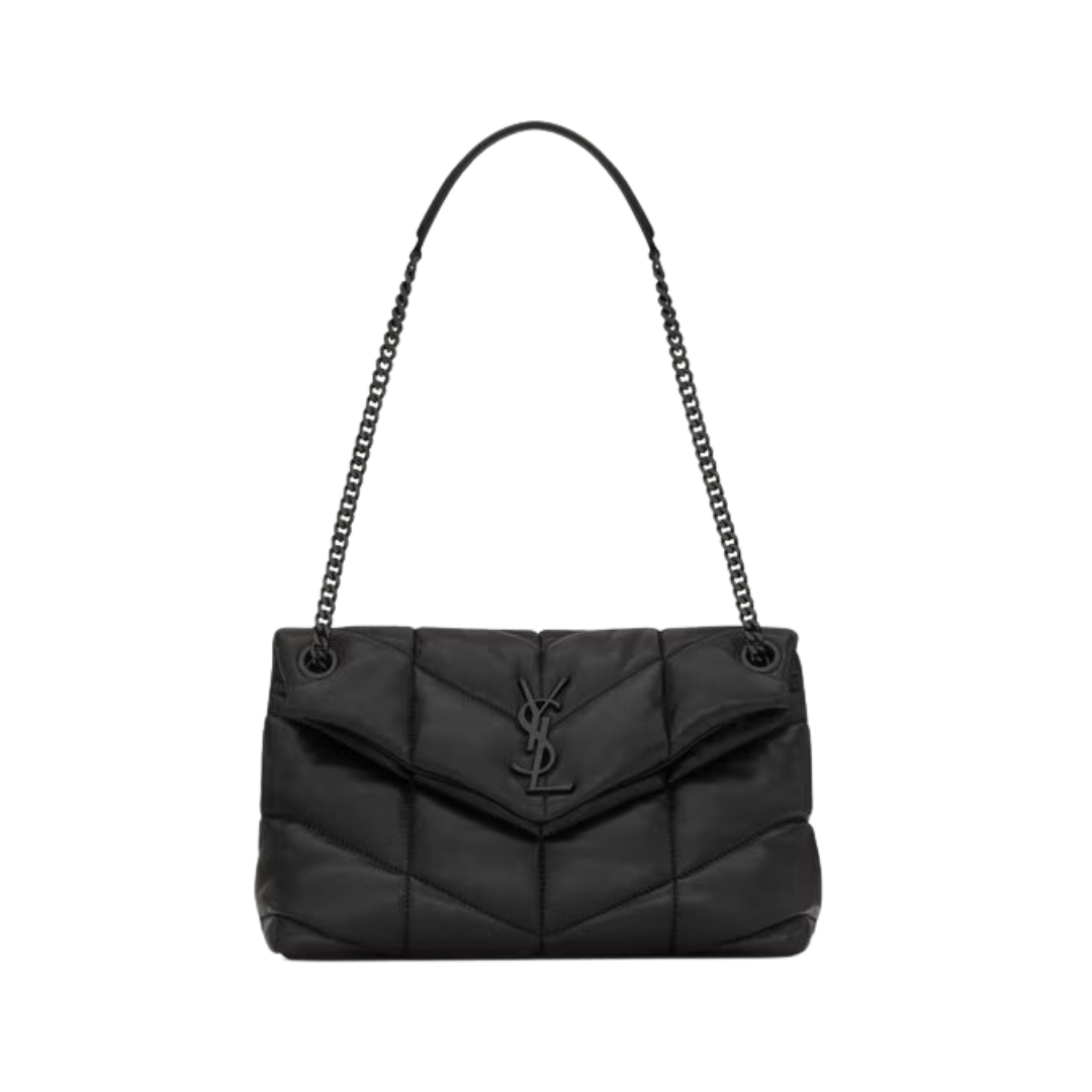 Borsa Saint Laurent Loulou Puffer Small in nappa nera 29 cm