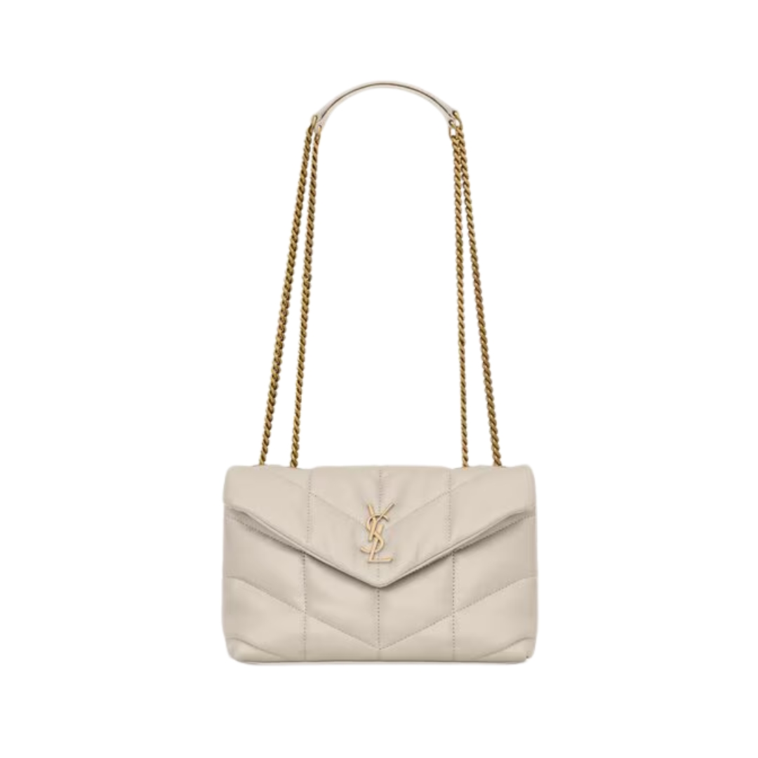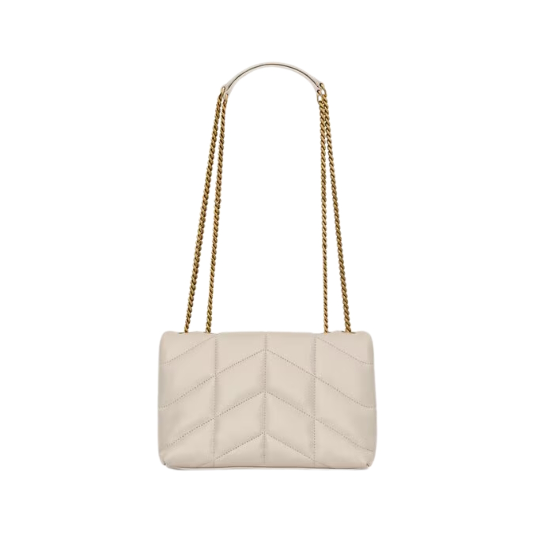 Borsa Saint Laurent Loulou Puffer Toy in nappa avorio 23 cm