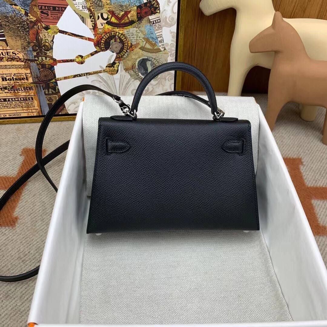 Borsa Hermès Kelly 20 in pelle Epsom nera con hardware palladio