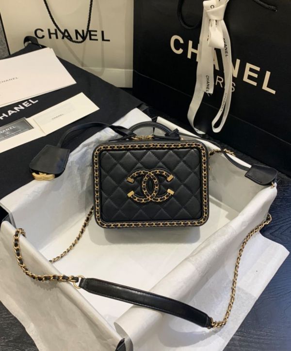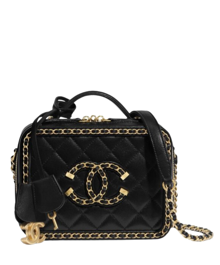Mini Borsa Chanel CC Filigree Vanity Case in pelle nera 18 cm