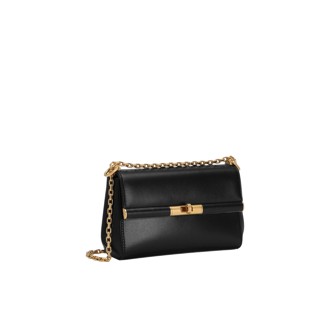 Borsa Mini Marlene City in pelle nera con tracolla a catena