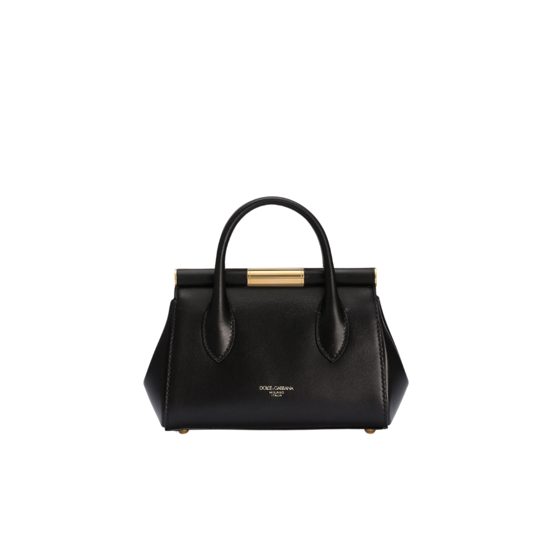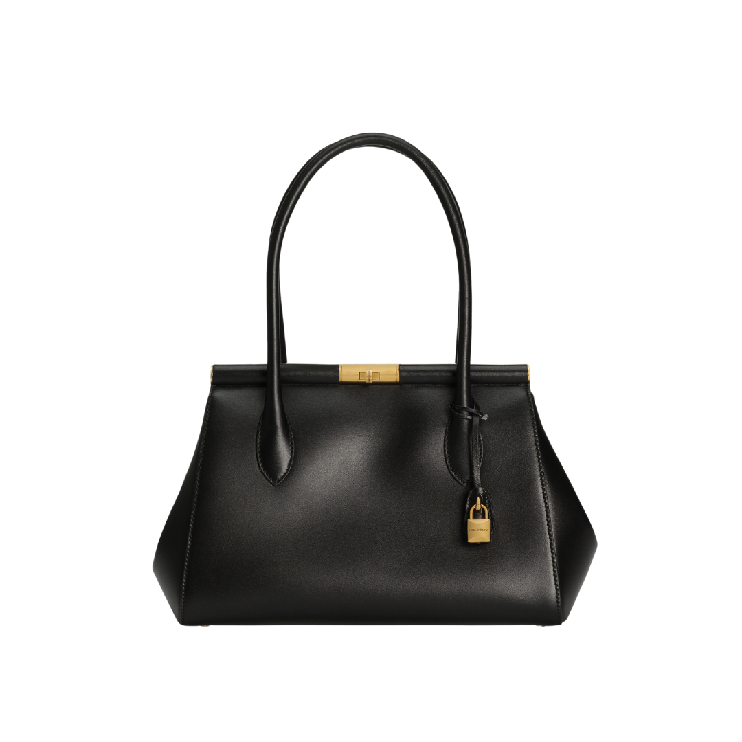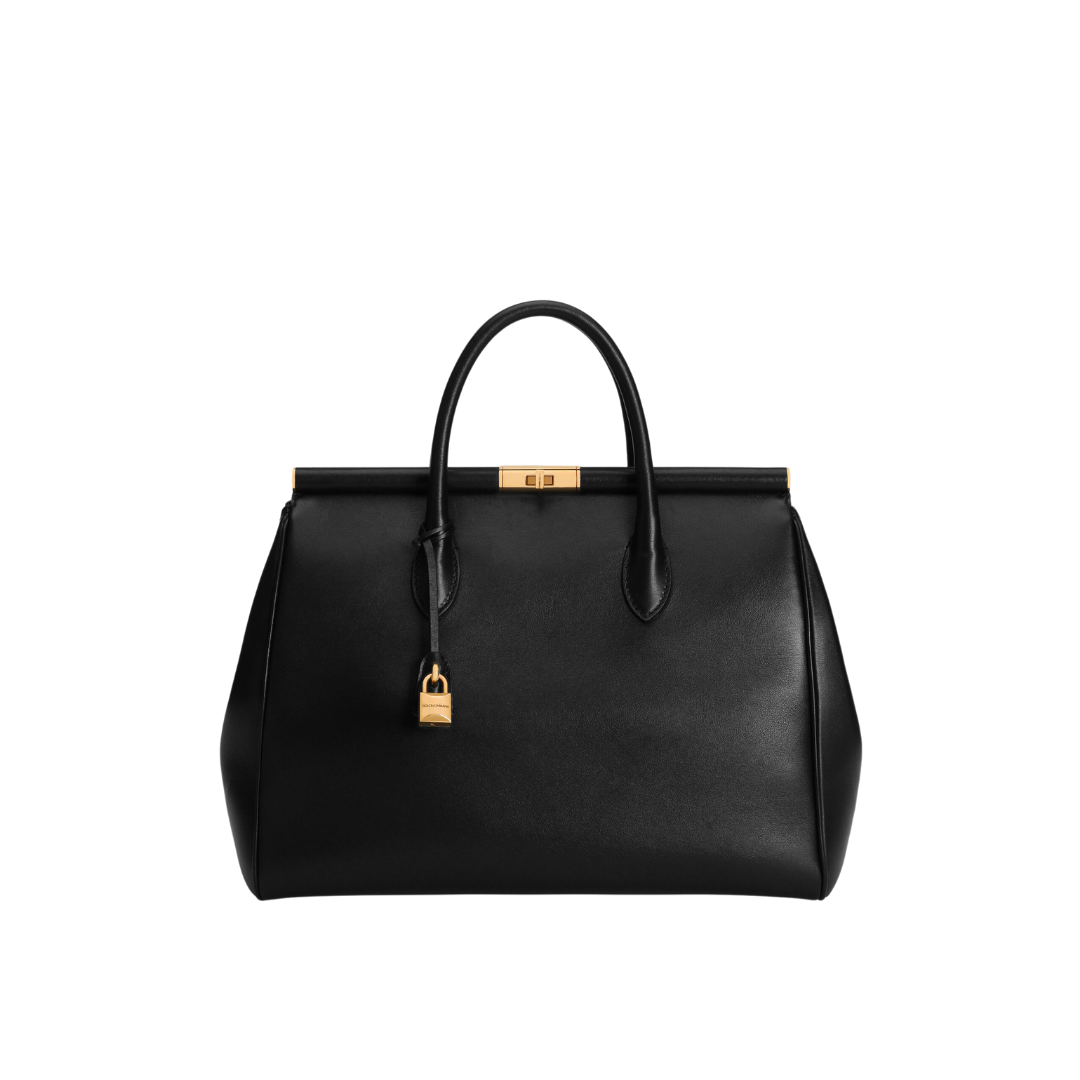 Borsa Marlene da giorno in pelle nera con manici rigidi