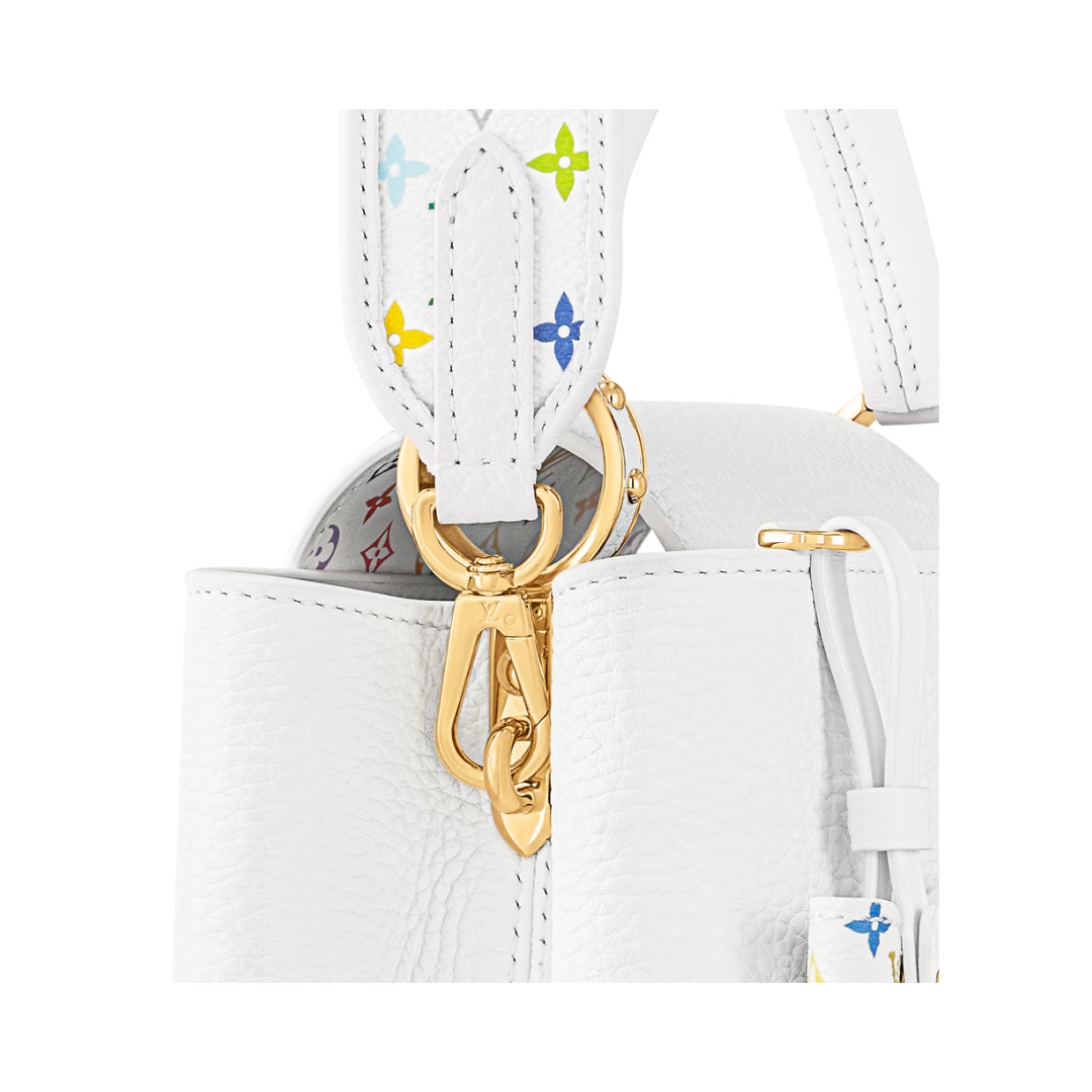 Borsa Louis Vuitton Capucines BB bianca con dettagli Monogram multicolor 27 cm