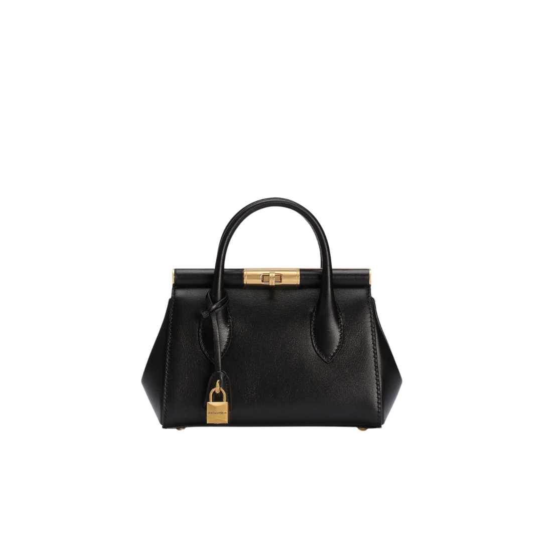 Borsa Marlene da tutti i giorni in pelle nera con doppio manico e charm