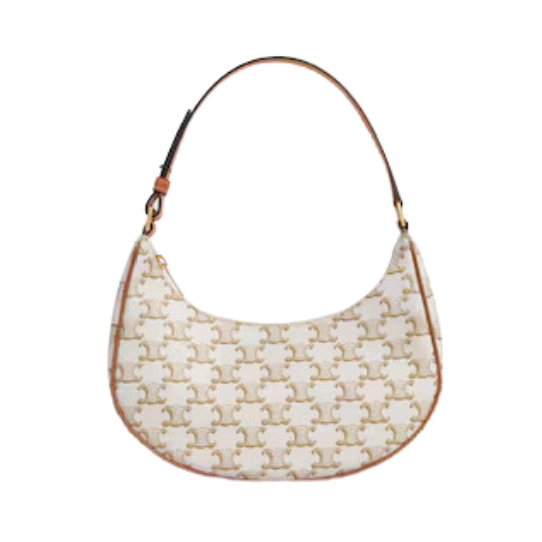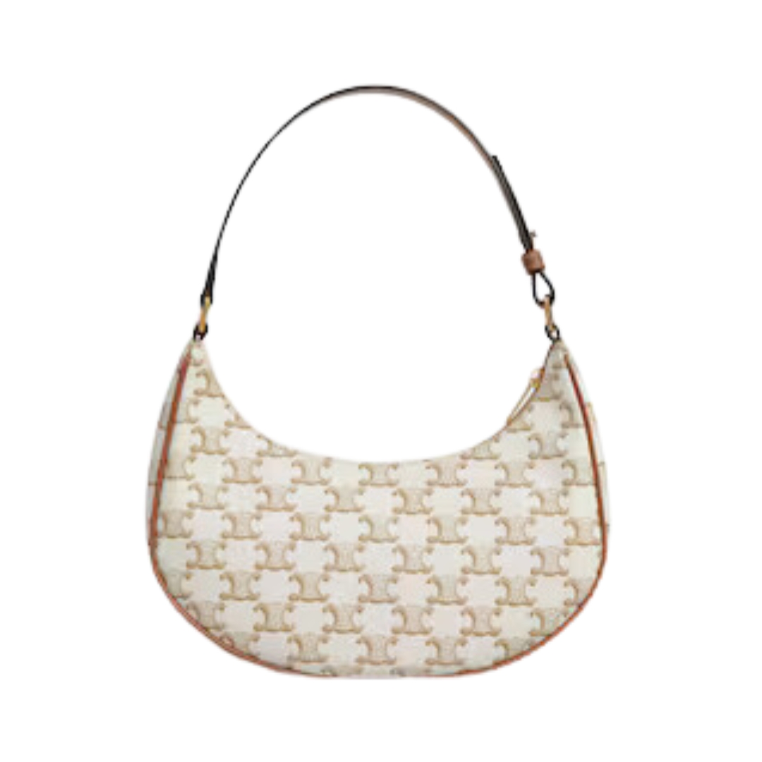 Borsa Celine Triomphe 24,5 cm in canvas bianco e pelle di vitello