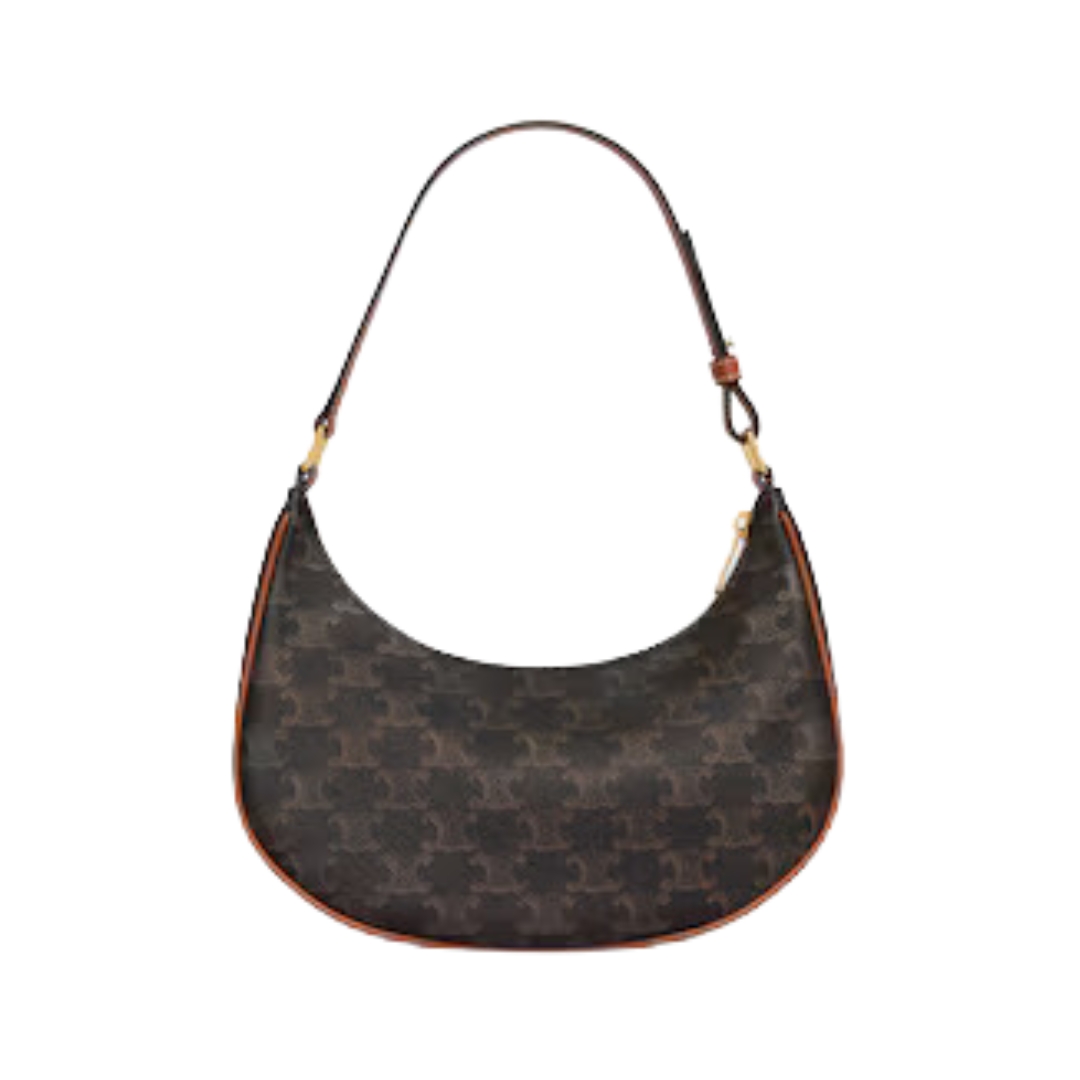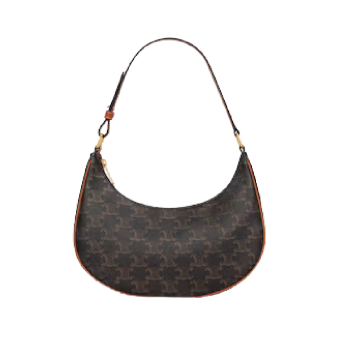 Borsa Celine Triomphe 24,5 cm in canvas e pelle tan
