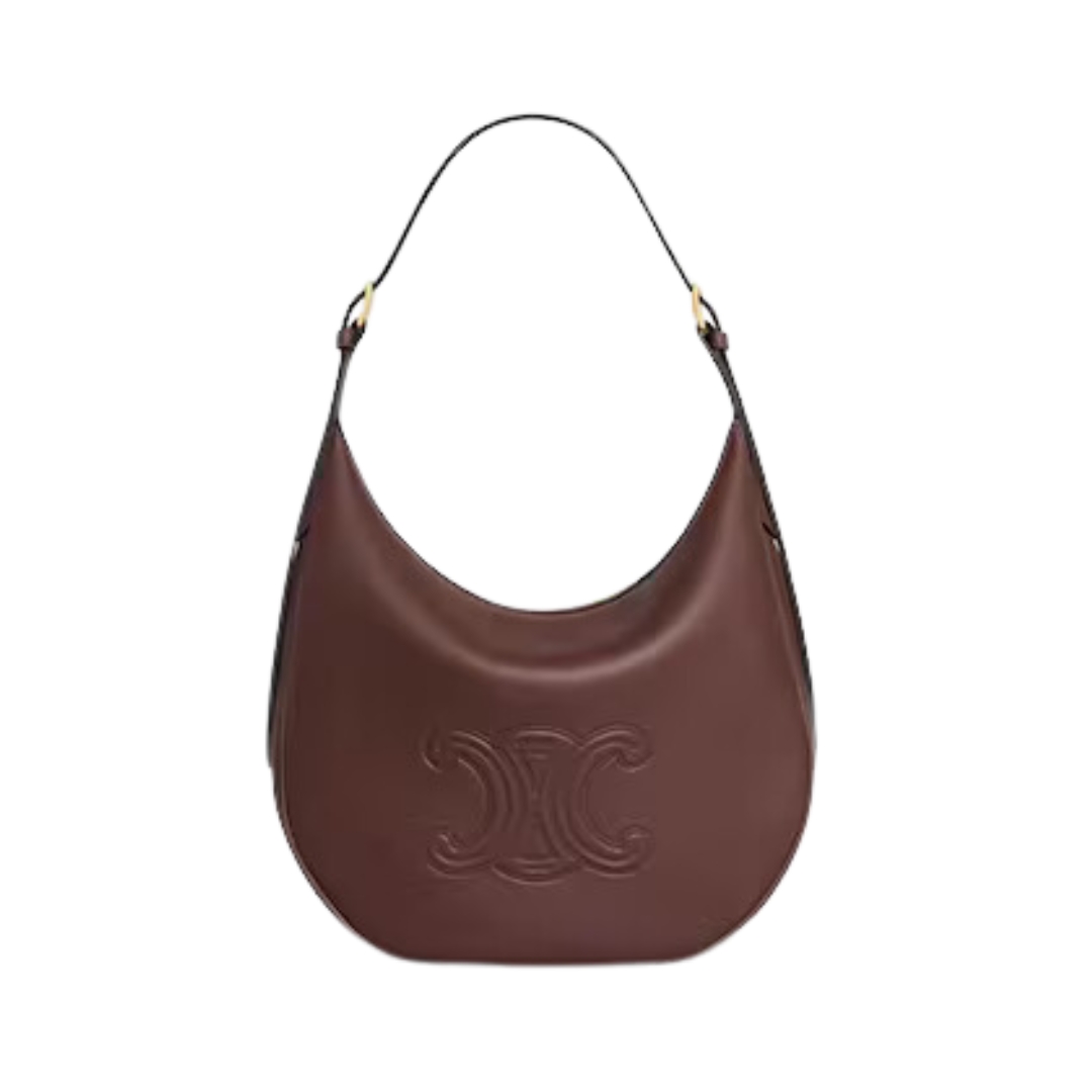Borsa Celine Triomphe 30 cm in pelle liscia e strutturata marrone castagna